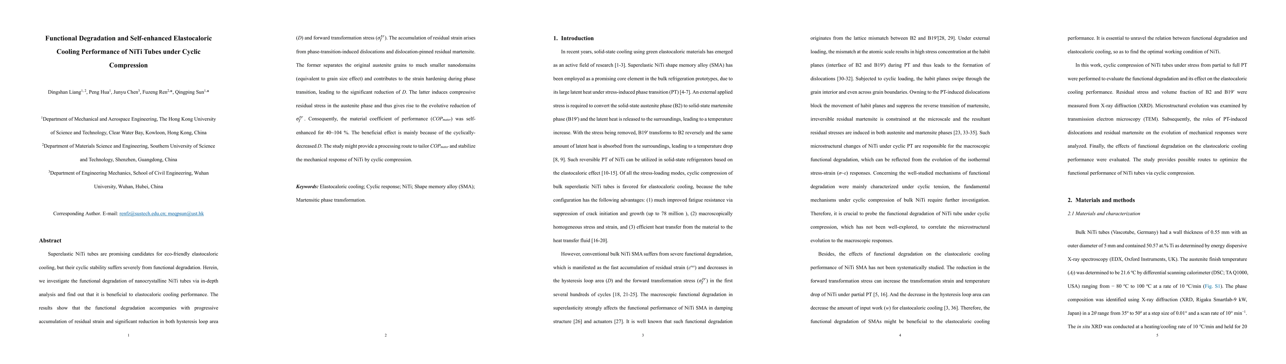 This study explores the functional degradation of nanocrystalline NiTi tubes under cyclic compression, revealing that it enhances elastocaloric cooling performance. The degradation results in reduced hysteresis loop area and forward transformation stress, leading to a self-enhanced material coefficient of performance by 40~104%.