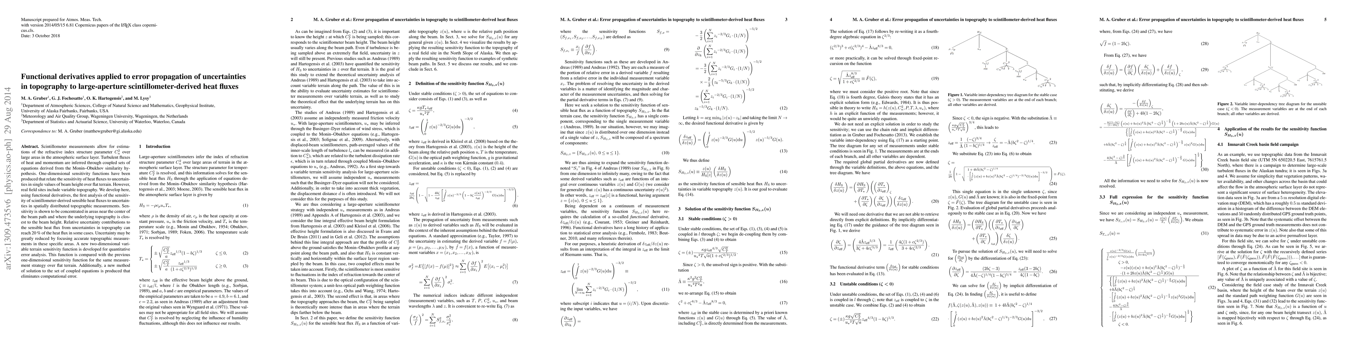 This paper develops functional derivatives to analyze how uncertainties in spatially distributed topographic measurements affect scintillometer-derived sensible heat fluxes, revealing that sensitivity is highest near the beam path center and in areas with topography close to the beam height. A new two-dimensional sensitivity function is introduced to better quantify error propagation compared to the previous one-dimensional function.