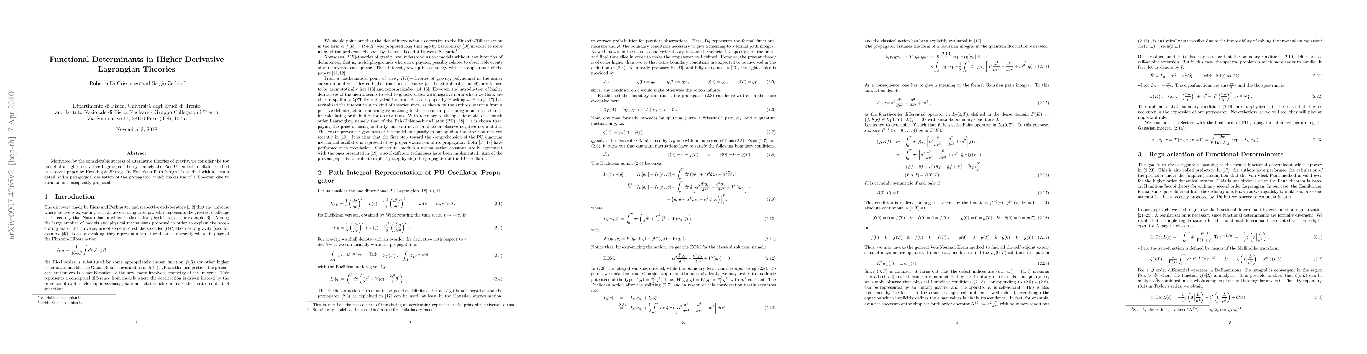 Motivated by the considerable success of alternative theories of gravity, we consider the toy model of a higher derivative Lagrangian theory, namely the Pais-Uhlenbeck oscillator studied in a recent paper by Hawking-Hertog. Its Euclidean Path Integral is studied with a certain detail and a pedagogical derivation of the propagator, which makes use of a Theorem due to Forman, is consequently proposed