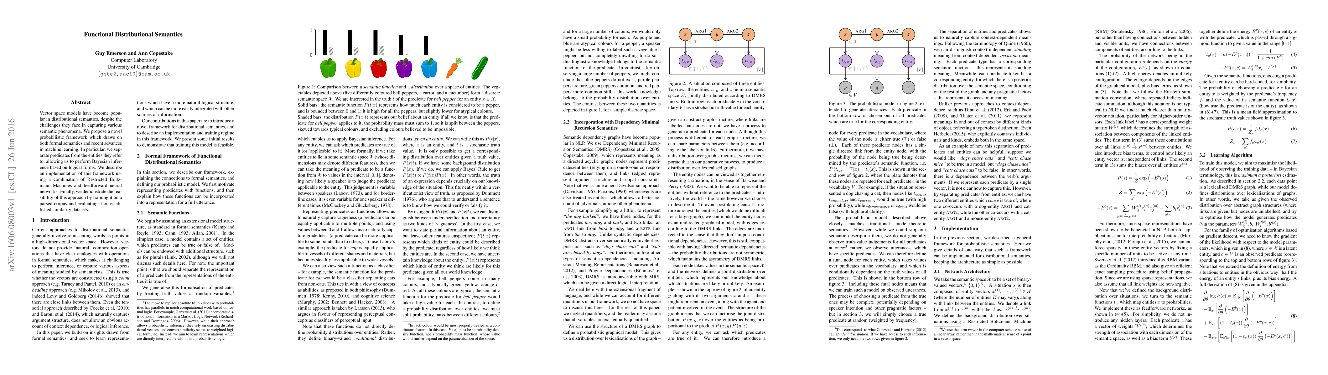 This paper introduces a probabilistic framework for functional distributional semantics that separates predicates from entities, enabling Bayesian inference based on logical forms. The proposed model combines Restricted Boltzmann Machines and neural networks, and its effectiveness is demonstrated through training on a parsed corpus and evaluation on similarity datasets.