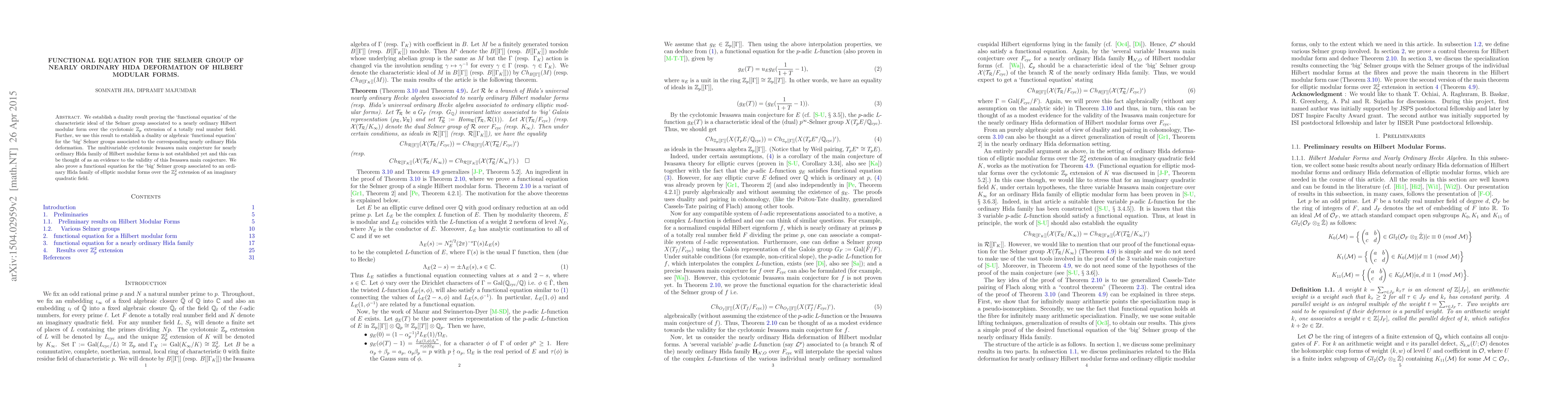 This paper establishes a functional equation for the characteristic ideal of the Selmer group linked to nearly ordinary Hilbert modular forms over cyclotomic $\mathbb{Z}_{p}$ extensions. It also proves a duality for the corresponding "big" Selmer groups in the context of nearly ordinary Hida deformations, providing evidence for the multivariable cyclotomic Iwasawa main conjecture.