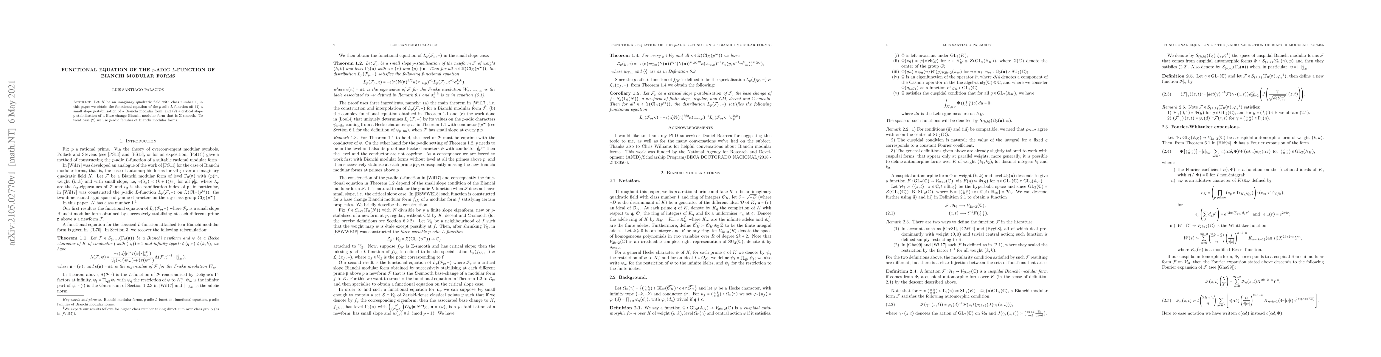 This paper establishes the functional equation for the $p$-adic $L$-functions of $p$-stabilizations of Bianchi modular forms, focusing on both small and critical slopes, with special attention to $\Sigma$-smooth base change forms through $p$-adic families.