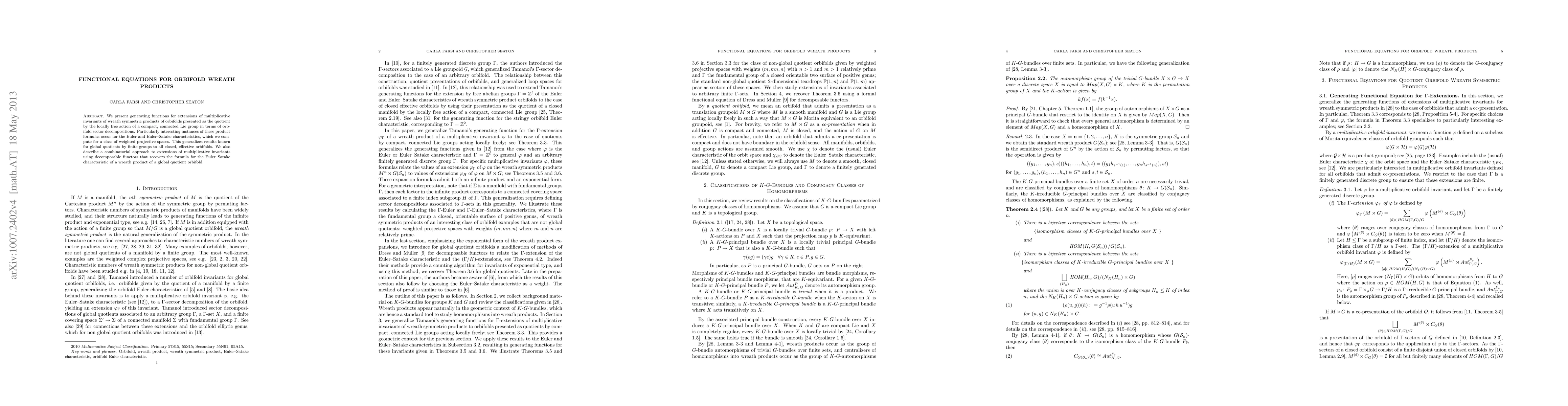 This paper introduces generating functions for multiplicative invariants of orbifold wreath products, extending results for global quotients by finite groups to all closed, effective orbifolds. It computes Euler and Euler-Satake characteristics for weighted projective spaces and uses decomposable functors for a combinatorial approach.
