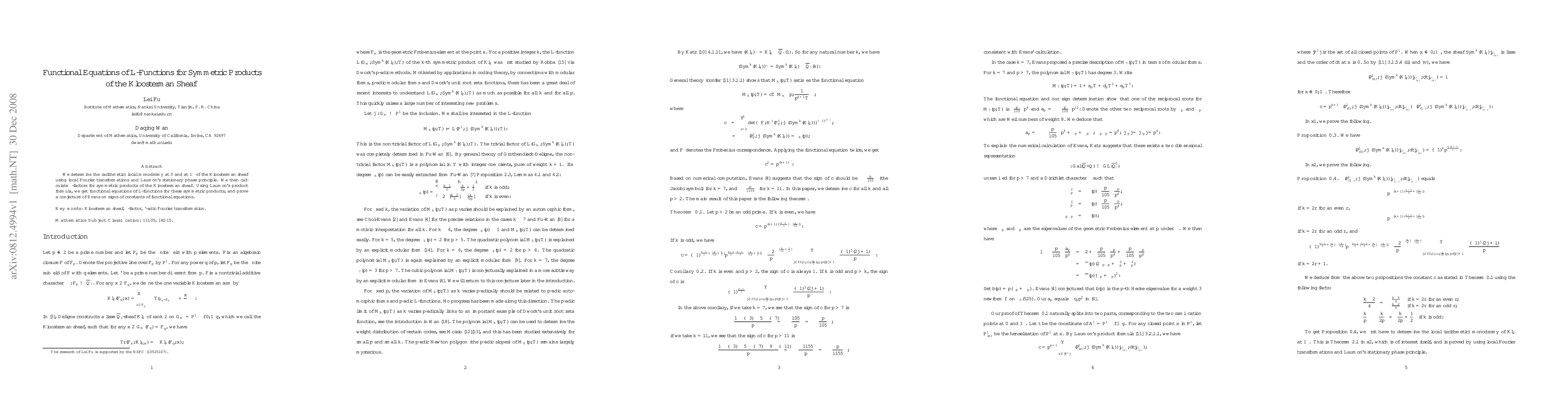 This paper determines local monodromy for the Kloosterman sheaf and calculates $\epsilon$-factors for its symmetric products, deriving functional equations for associated $L$-functions and proving a conjecture regarding the signs of constants in these equations.