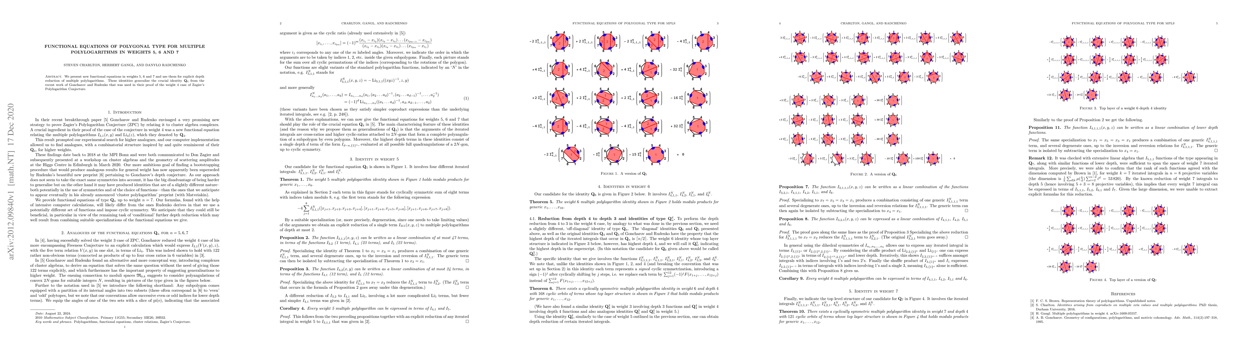 Summary: This paper introduces novel functional equations for multiple polylogarithms in weights 5, 6, and 7, extending the critical $\mathbf{Q}_4$ identity. These new identities facilitate the explicit depth reduction of multiple polylogarithms, building on previous work in proving the weight 4 case of Zagier's Polylogarithm Conjecture.