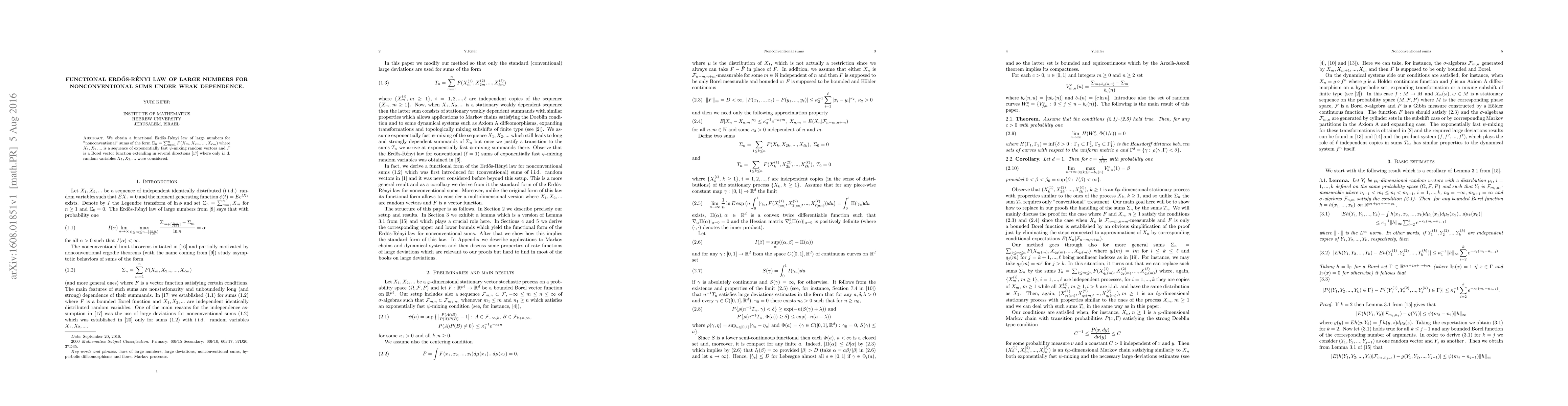 Summary: This paper establishes a functional Erdős-Rényi law of large numbers for nonconventional sums involving exponentially fast ψ-mixing random vectors and a Borel vector function, extending previous results for independent and identically distributed random variables.