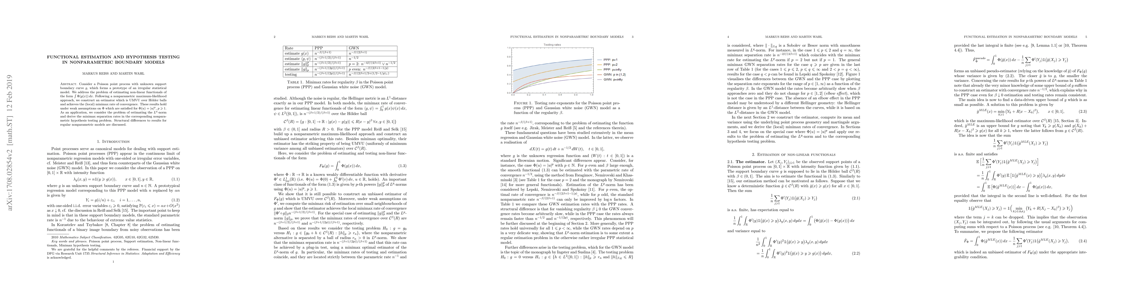 This paper develops a nonparametric maximum-likelihood estimator for functionals of an unknown boundary curve in Poisson point processes, achieving optimal convergence rates under H\"older regularity conditions. It also explores the $L^p$-norm estimation and hypothesis testing, highlighting structural differences compared to regular nonparametric models.