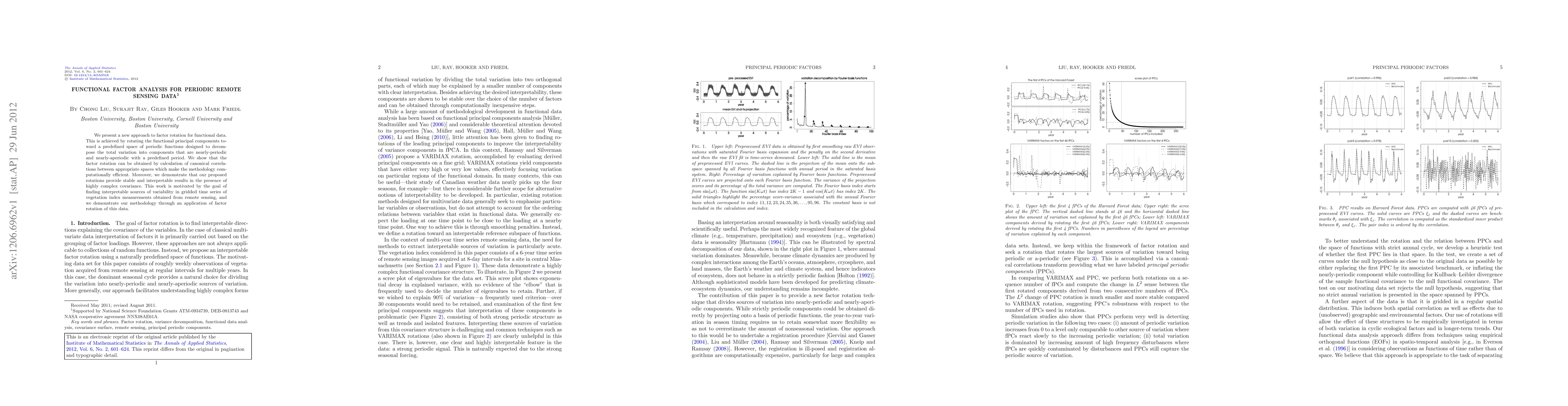 A new approach to factor rotation for functional data is presented, which uses periodic functions to decompose total variation into nearly-periodic and nearly-aperiodic components. The method provides stable and interpretable results in complex data and was demonstrated through an application of factor rotation on gridded time series of vegetation index measurements.