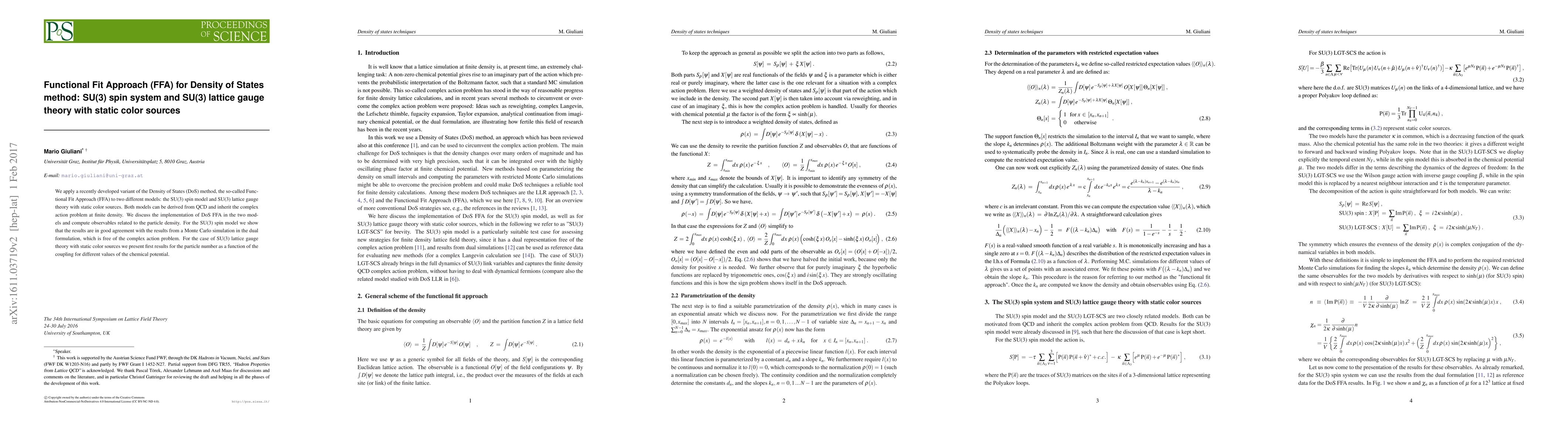 Researchers apply a new method called Functional Fit Approach to study particle density in two complex models: SU(3) spin system and lattice gauge theory with static color sources. The results show promising agreement with Monte Carlo simulations in some cases.