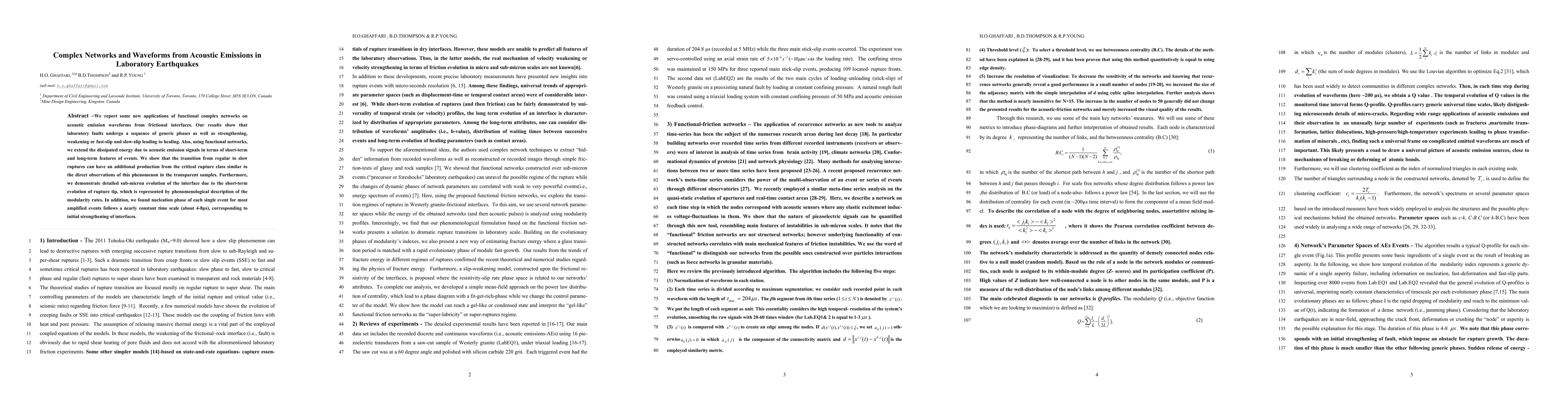 Researchers used functional complex networks to study laboratory earthquakes, finding that faults go through generic phases, strengthen, weaken, or experience fast-slip and slow-slip leading to healing. They also discovered a pattern in the nucleation phase of events, which can help understand earthquake behavior.