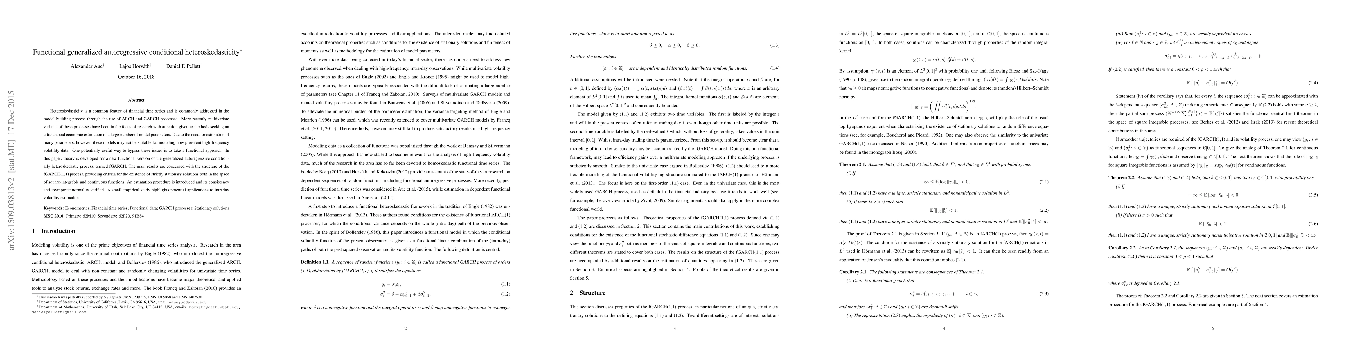 Heteroskedasticity is a common feature of financial time series and is commonly addressed in the model building process through the use of ARCH and GARCH processes. More recently multivariate variants of these processes have been in the focus of research with attention given to methods seeking an efficient and economic estimation of a large number of model parameters. Due to the need for estimation of many parameters, however, these models may not be suitable for modeling now prevalent high-frequency volatility data. One potentially useful way to bypass these issues is to take a functional approach. In this paper, theory is developed for a new functional version of the generalized autoregressive conditionally heteroskedastic process, termed fGARCH. The main results are concerned with the structure of the fGARCH(1,1) process, providing criteria for the existence of a strictly stationary solutions both in the space of square-integrable and continuous functions. An estimation procedure is introduced and its consistency verified. A small empirical study highlights potential applications to intraday volatility estimation.