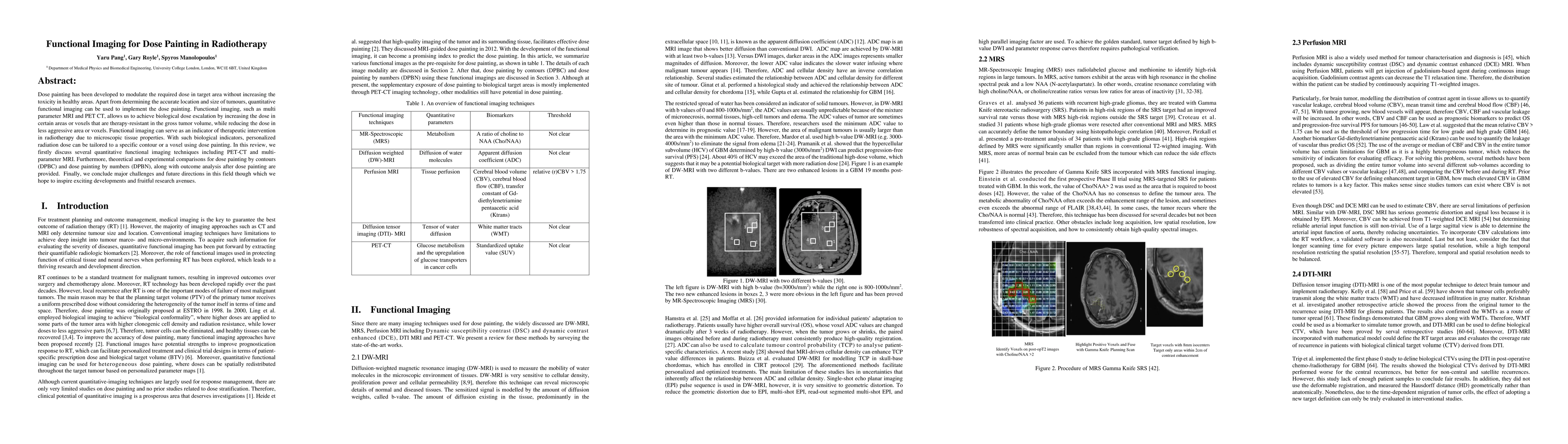 Dose painting has been developed to modulate the required dose in the target area without increasing the toxicity in healthy areas. Apart from determining the accurate location and size of tumors, quantitative functional imaging can be used to implement the dose painting. Functional imaging, such as multi-parameter MRI and PET CT, allows us to achieve biological dose escalation by increasing the dose in certain areas or voxels that are therapy-resistant in the gross tumor volume while reducing the dose in the less aggressive area or voxels. Functional imaging can serve as an indicator of therapeutic intervention in radiotherapy due to microscopic tissue properties. With such biological indicators, the personalized radiation dose can be tailored to a specific contour or a voxel using dose painting. In this review, we firstly discuss several quantitative functional imaging techniques including PET-CT and multi-parameter MRI. Furthermore, theoretical and experimental comparisons for dose painting by contours (DPBC) and dose painting by numbers (DPBN), along with outcome analysis after dose painting are provided. Finally, we conclude major challenges and future directions in this field through which we hope to inspire exciting developments and fruitful research avenues.