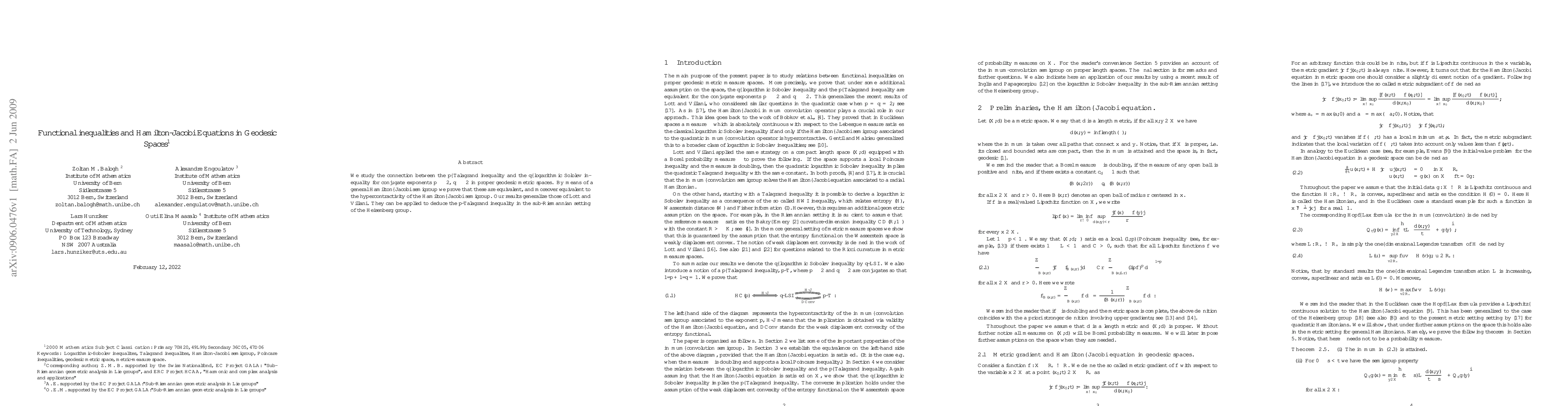 This paper establishes the equivalence between the $p$-Talagrand inequality and the $q$-logarithmic Sobolev inequality in geodesic spaces through a Hamilton-Jacobi semigroup, extending prior results by Lott and Villani and applying to the Heisenberg group.