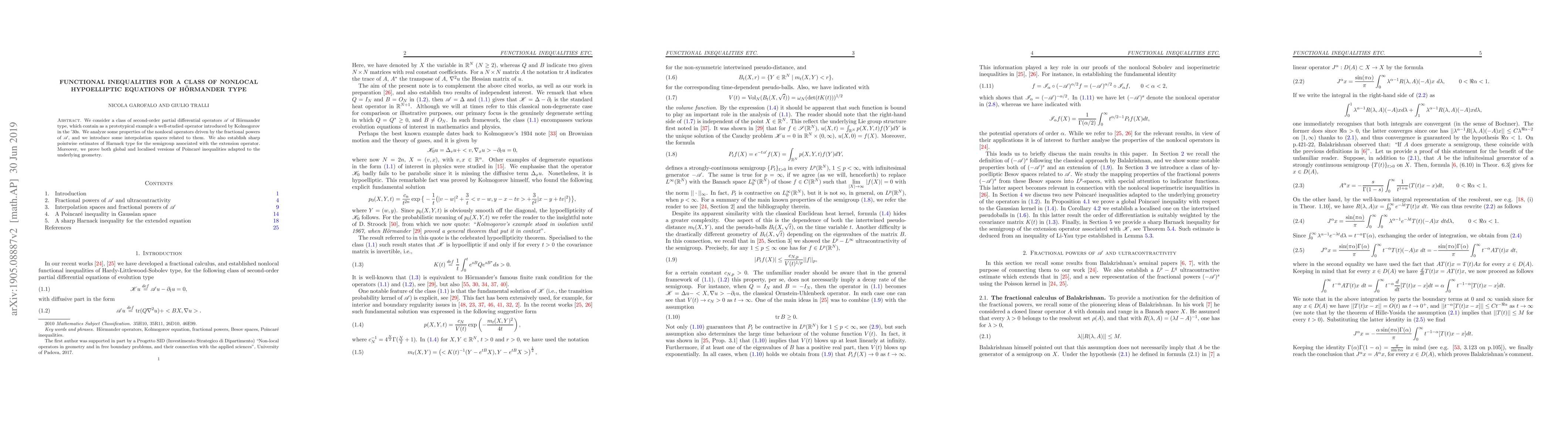 This research explores properties of nonlocal operators derived from Hormander type second-order PDEs, focusing on a Kolmogorov '30s operator example. It introduces related interpolation spaces, provides sharp Harnack type semigroup estimates, and proves global and localized Poincaré inequality versions tailored to the geometry.