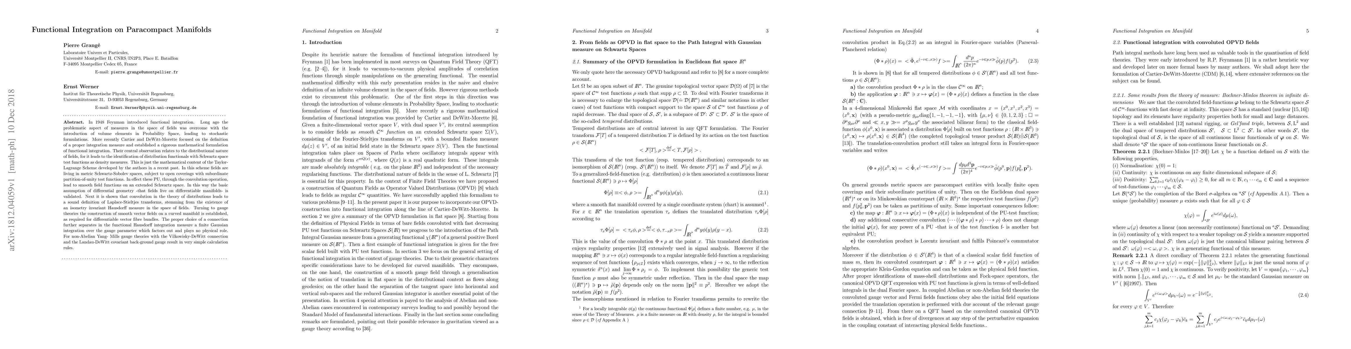 Researchers develop a rigorous mathematical formulation of functional integration on paracompact manifolds, enabling the creation of smooth field functions and differentiable vector fibre bundles.