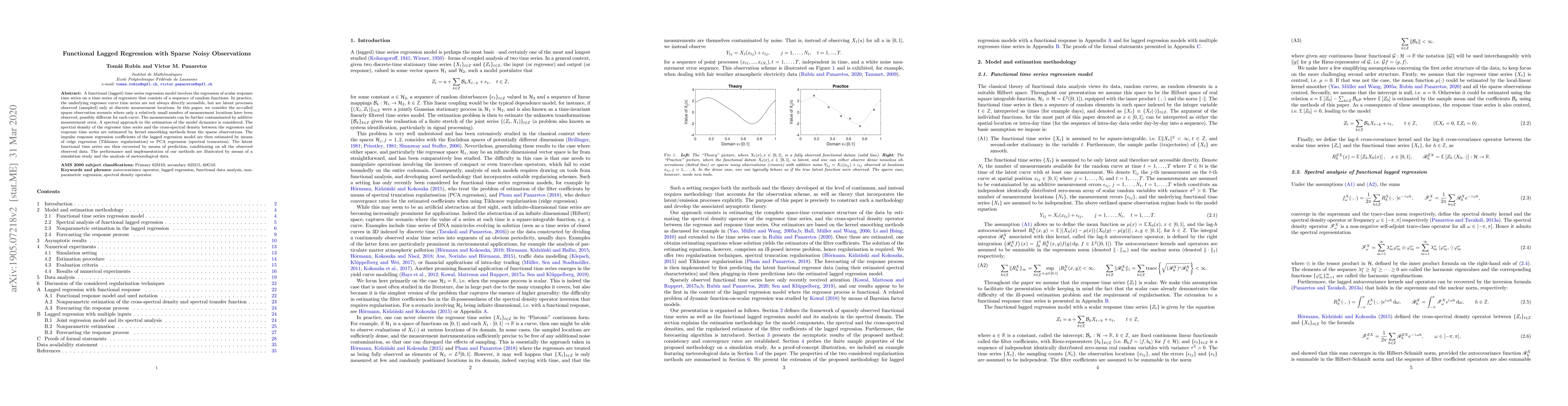 A functional (lagged) time series regression model involves the regression of scalar response time series on a time series of regressors that consists of a sequence of random functions. In practice, the underlying regressor curve time series are not always directly accessible, but are latent processes observed (sampled) only at discrete measurement locations. In this paper, we consider the so-called sparse observation scenario where only a relatively small number of measurement locations have been observed, possibly different for each curve. The measurements can be further contaminated by additive measurement error. A spectral approach to the estimation of the model dynamics is considered. The spectral density of the regressor time series and the cross-spectral density between the regressors and response time series are estimated by kernel smoothing methods from the sparse observations. The impulse response regression coefficients of the lagged regression model are then estimated by means of ridge regression (Tikhonov regularisation) or PCA regression (spectral truncation). The latent functional time series are then recovered by means of prediction, conditioning on all the observed observed data. The performance and implementation of our methods are illustrated by means of a simulation study and the analysis of meteorological data.