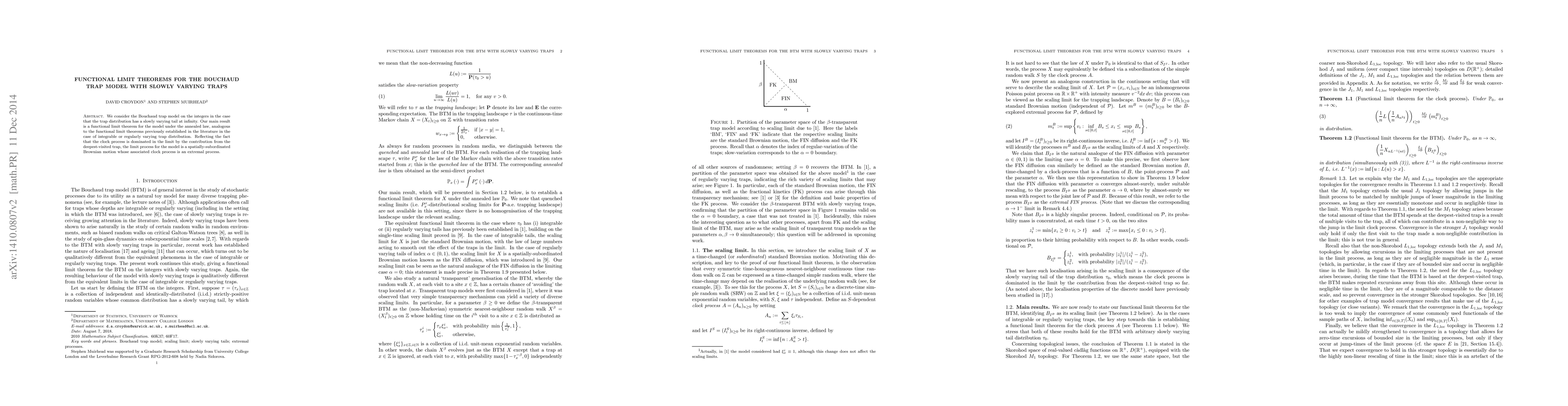 Summary: This paper establishes a functional limit theorem for the Bouchaud trap model with a slowly varying tail in its trap distribution, showing the model's annealed law converges to a spatially-subordinated Brownian motion driven by an extremal clock process. The deepest-visited trap's contribution dominates the clock process in the limit.