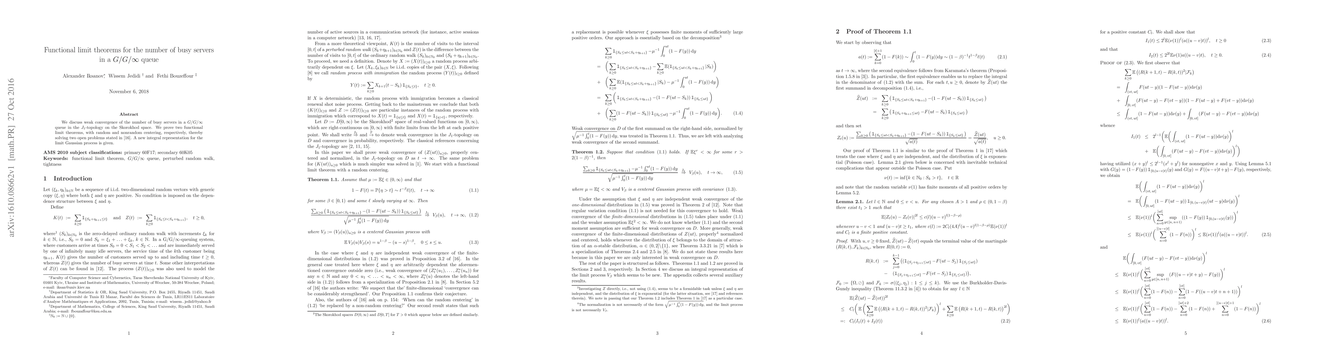 This research paper proves two functional limit theorems for the number of busy servers in a G/G/infinity queue, solving an open problem, and provides a new integral representation for the limit Gaussian process.