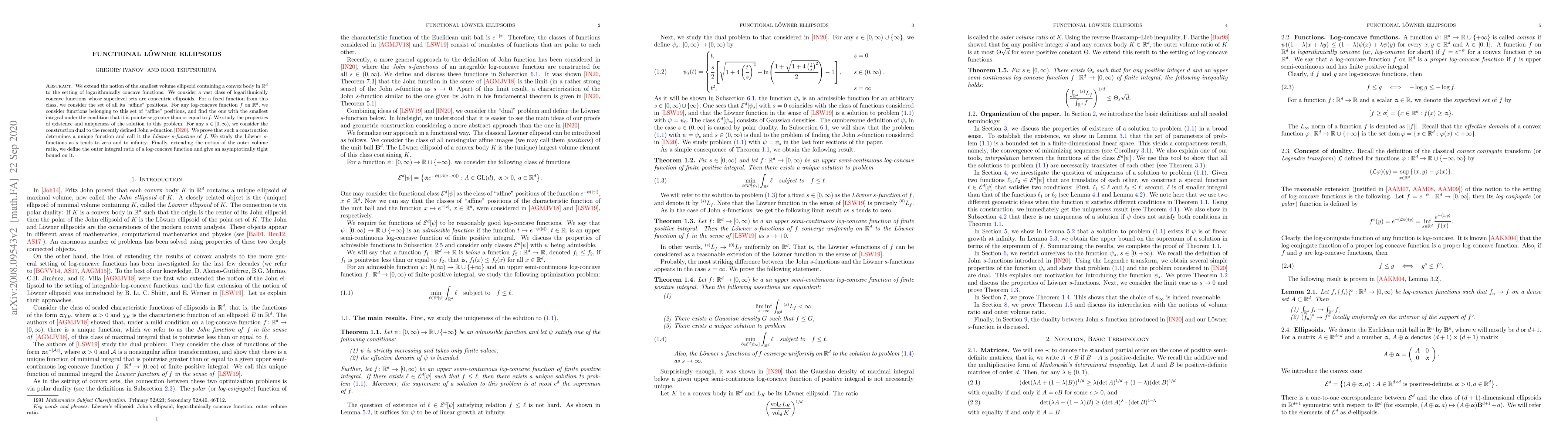 This paper extends the concept of smallest volume ellipsoids to logarithmically concave functions, identifying the unique "Löwner s-function" for any given log-concave function. It also introduces the outer integral ratio and provides an asymptotically tight bound for it.