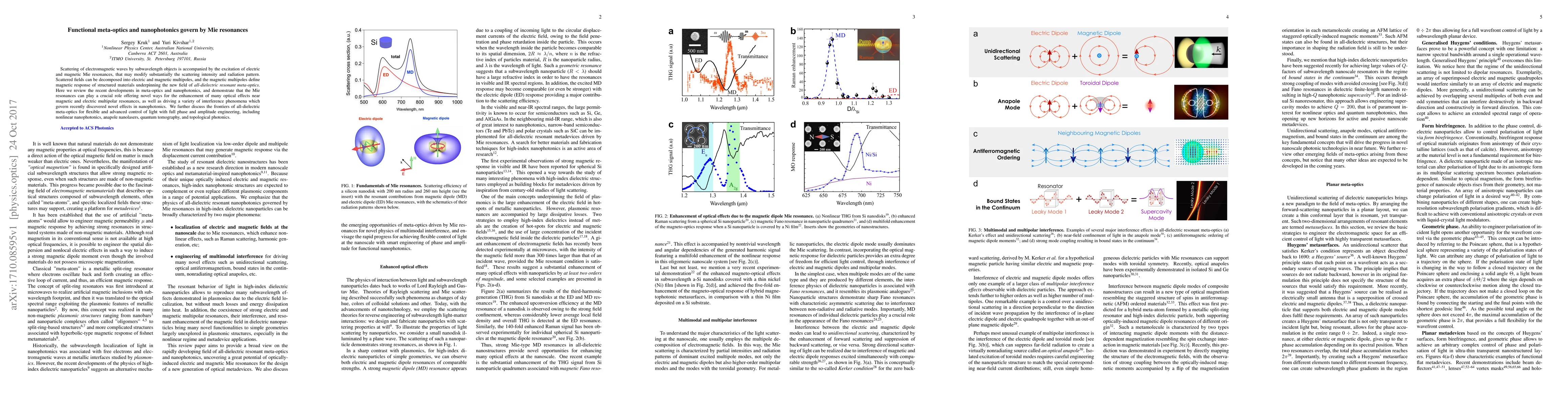 This paper reviews recent advancements in meta-optics and nanophotonics, highlighting how Mie resonances influence electromagnetic wave scattering and enable new optical effects through electric and magnetic multipoles. It explores applications in flexible light control, nonlinear optics, and topological photonics.