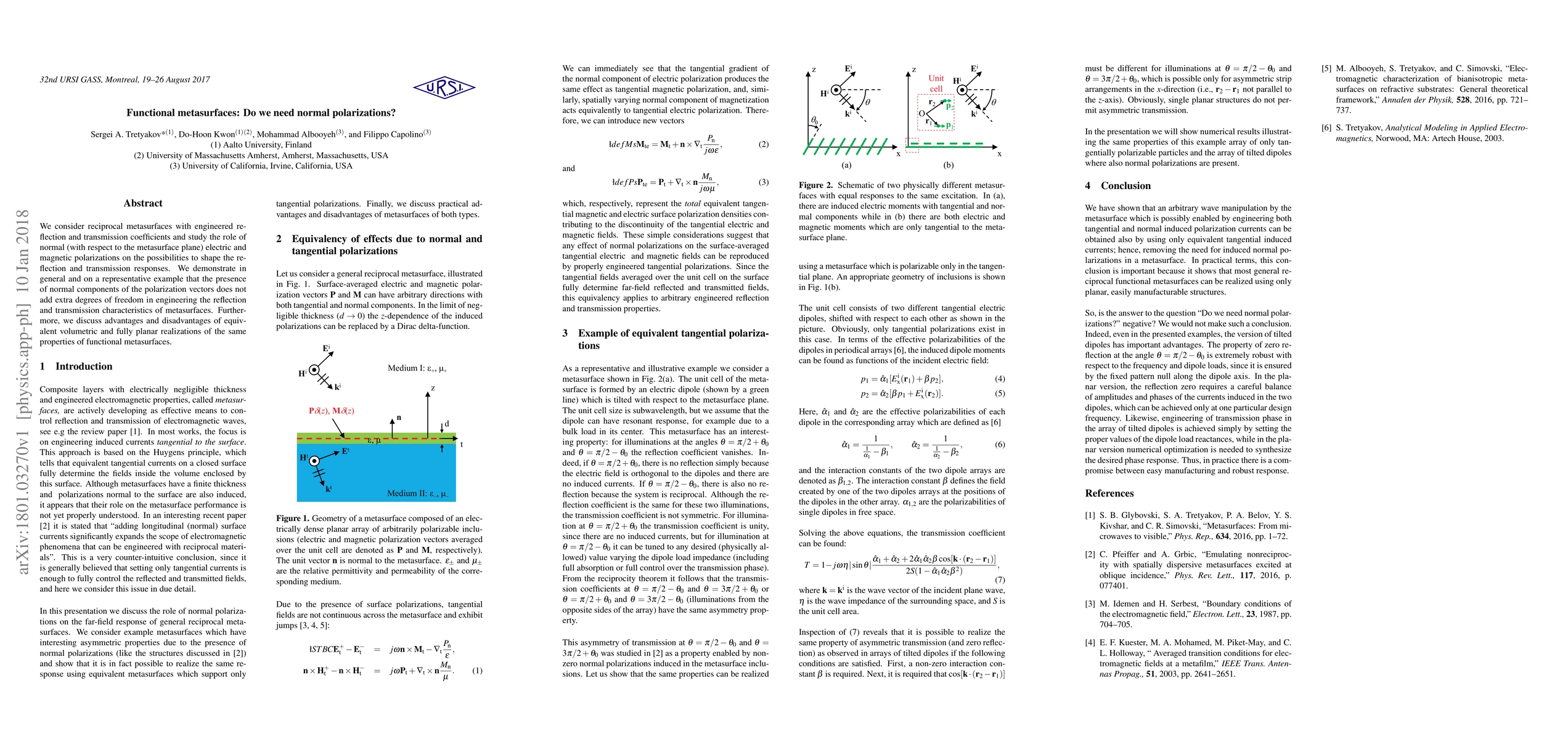 This paper investigates the role of normal electric and magnetic polarizations in reciprocal metasurfaces and concludes that these components do not provide additional design freedom for shaping reflection and transmission responses. It also compares the properties of volumetric versus fully planar metasurfaces.