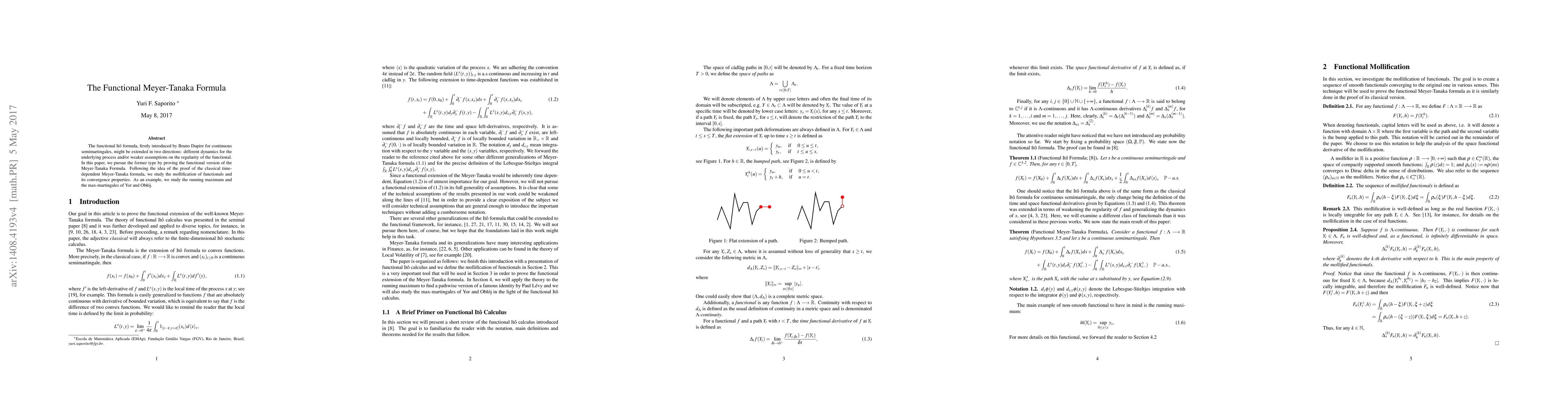 This paper extends the functional Ito formula by proving the functional version of the Meyer-Tanaka Formula for different underlying dynamics. It explores mollification of functionals and their convergence properties, with a focus on the running maximum and max-martingales of Yor and Obloj.