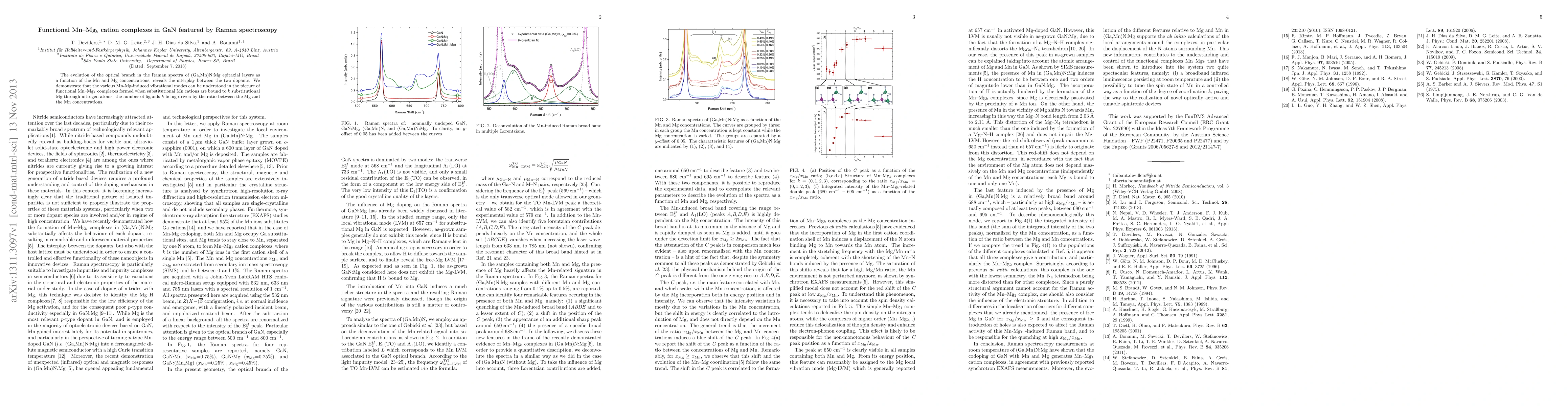 The evolution of the optical branch in the Raman spectra of (Ga,Mn)N:Mg epitaxial layers as a function of the Mn and Mg concentrations, reveals the interplay between the two dopants. We demonstrate that the various Mn-Mg-induced vibrational modes can be understood in the picture of functional Mn--Mg$_k$ complexes formed when substitutional Mn cations are bound to $k$ substitutional Mg through nitrogen atoms, the number of ligands $k$ being driven by the ratio between the Mg and the Mn concentrations.