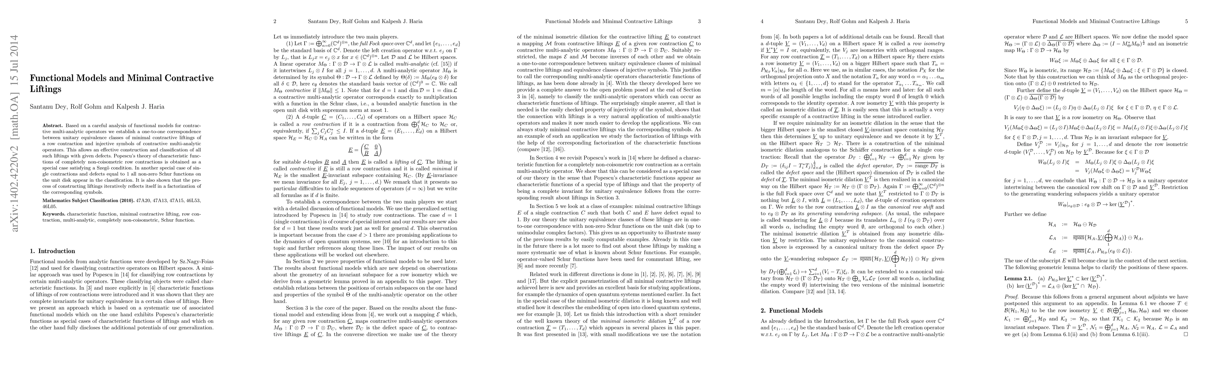 Based on a careful analysis of functional models for contractive multi-analytic operators we establish a one-to-one correspondence between unitary equivalence classes of minimal contractive liftings of a row contraction and injective symbols of contractive multi-analytic operators. This allows an effective construction and classification of all such liftings with given defects. Popescu's theory of characteristic functions of completely non-coisometric row contractions is obtained as a special case satisfying a Szeg\"{o} condition. In another special case of single contractions and defects equal to $1$ all non-zero Schur functions on the unit disk appear in the classification. It is also shown that the process of constructing liftings iteratively reflects itself in a factorization of the corresponding symbols.