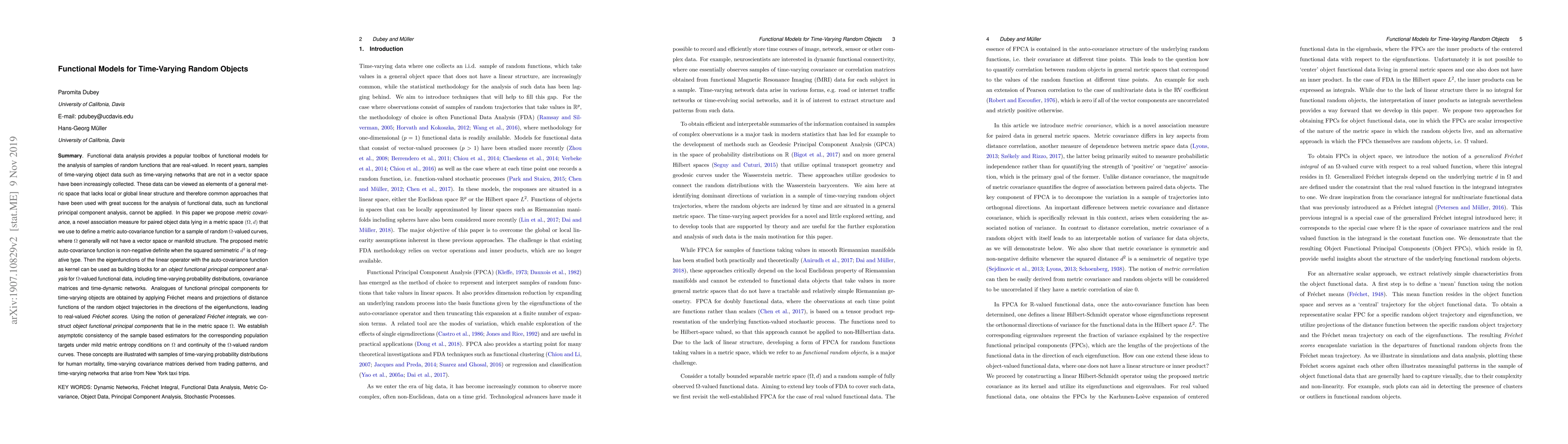 This research extends functional data analysis methods to time-varying random objects, providing a framework for analyzing complex, non-linear data that lacks vector space or manifold structure. It enables the extraction of meaningful patterns and insights from such data, with potential applications in various fields including epidemiology, economics, and social sciences.