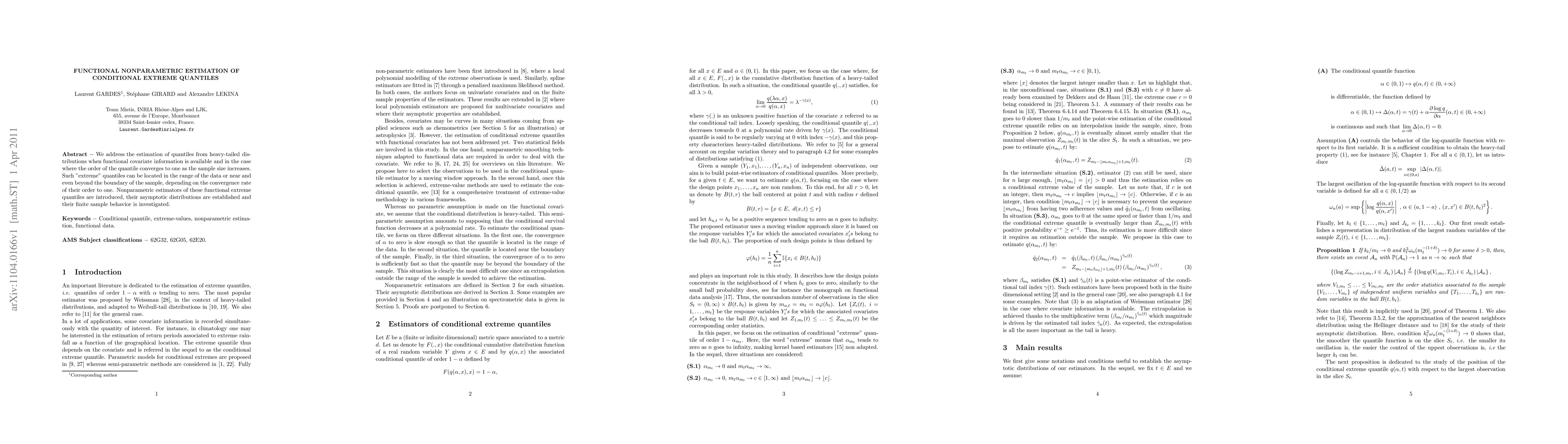 This paper introduces nonparametric estimators for extreme quantiles from heavy-tailed distributions using functional covariate information, and investigates their asymptotic properties and finite sample behavior. The focus is on quantiles where the order approaches one as sample size increases, potentially extending beyond sample boundaries.