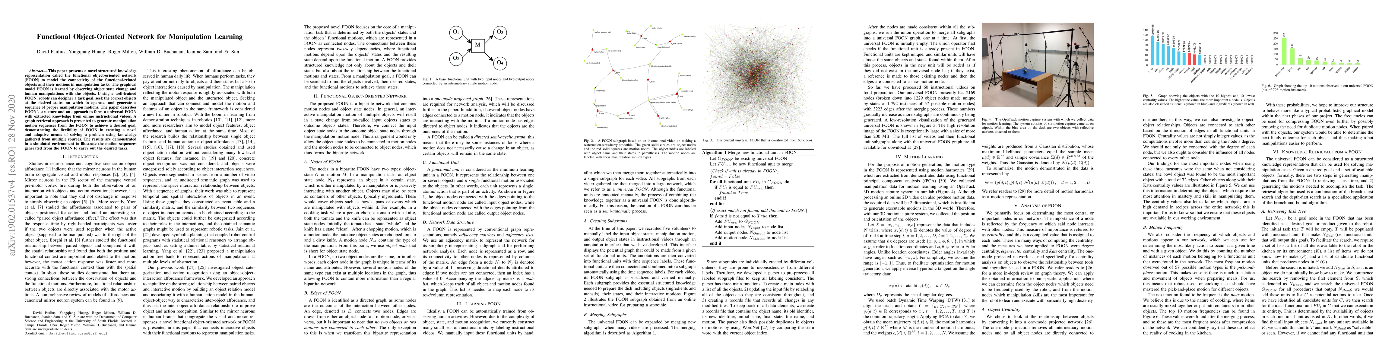 This paper introduces a functional object-oriented network (FOON) to model object connectivity and motions in manipulation tasks, enabling robots to understand task goals and generate appropriate manipulation sequences. The FOON is trained using observed object states and human interactions, and its flexibility is demonstrated through graph retrieval in a simulated environment.
