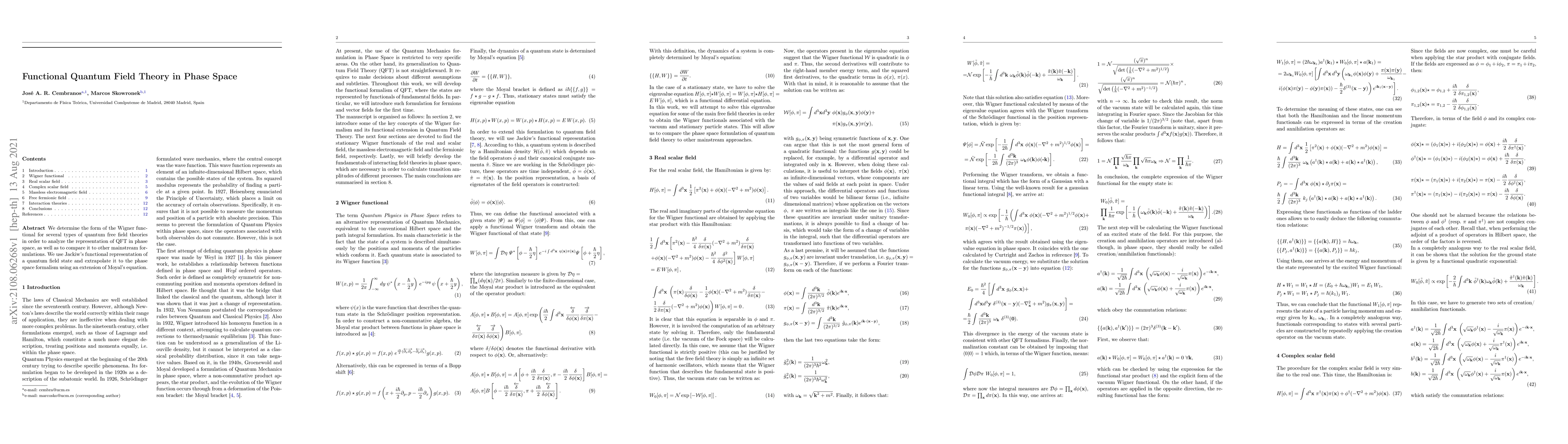 This paper derives the Wigner functional for various quantum free field theories to explore the representation of quantum field theory in phase space, employing Jackiw's functional representation and extending Moyal's equation for comparison with other mainstream formulations.