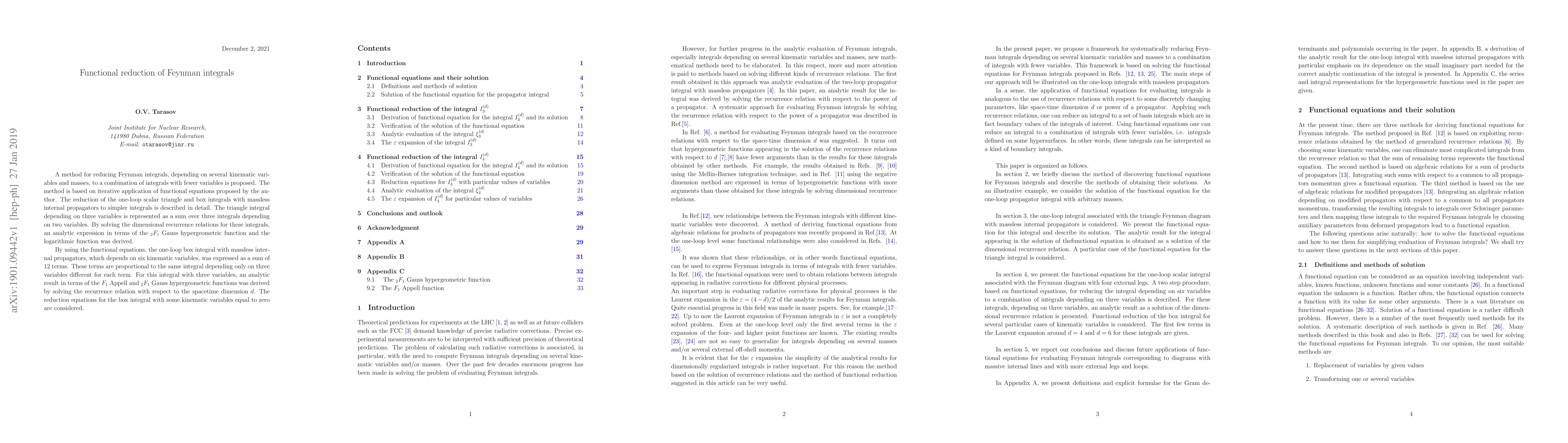This paper proposes a method to reduce complex Feynman integrals into simpler forms through iterative functional equations. It successfully applies this method to one-loop scalar triangle and box integrals, deriving analytic expressions in terms of hypergeometric functions and logarithms.