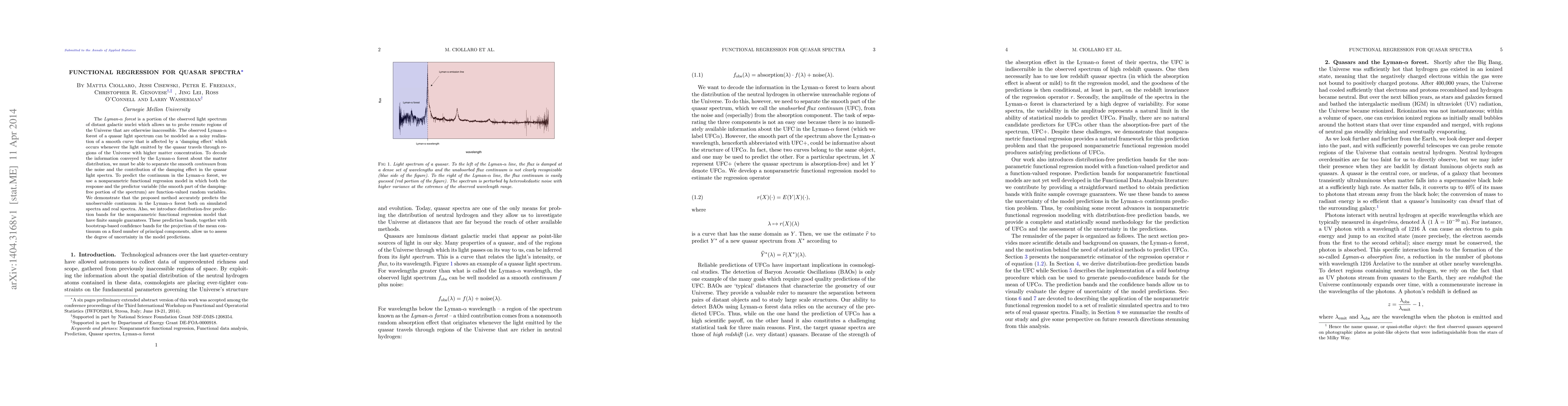 This paper proposes a nonparametric functional regression model to predict the continuum in the Lyman-alpha forest of quasar spectra, separating it from noise and damping effects. The method accurately predicts the continuum and introduces distribution-free prediction bands with finite sample guarantees to assess uncertainty.