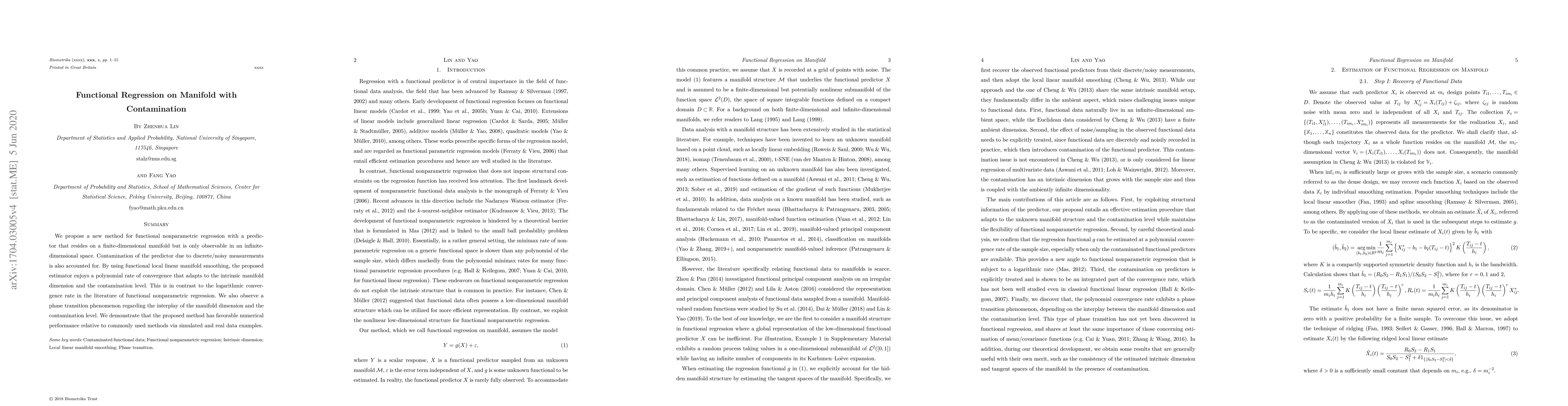 This paper introduces a novel method for functional nonparametric regression on a finite-dimensional manifold with contaminated predictors, achieving a polynomial convergence rate that adapts to the manifold dimension and contamination level, unlike the logarithmic rate in existing literature. The method demonstrates superior performance in simulations and real data applications.