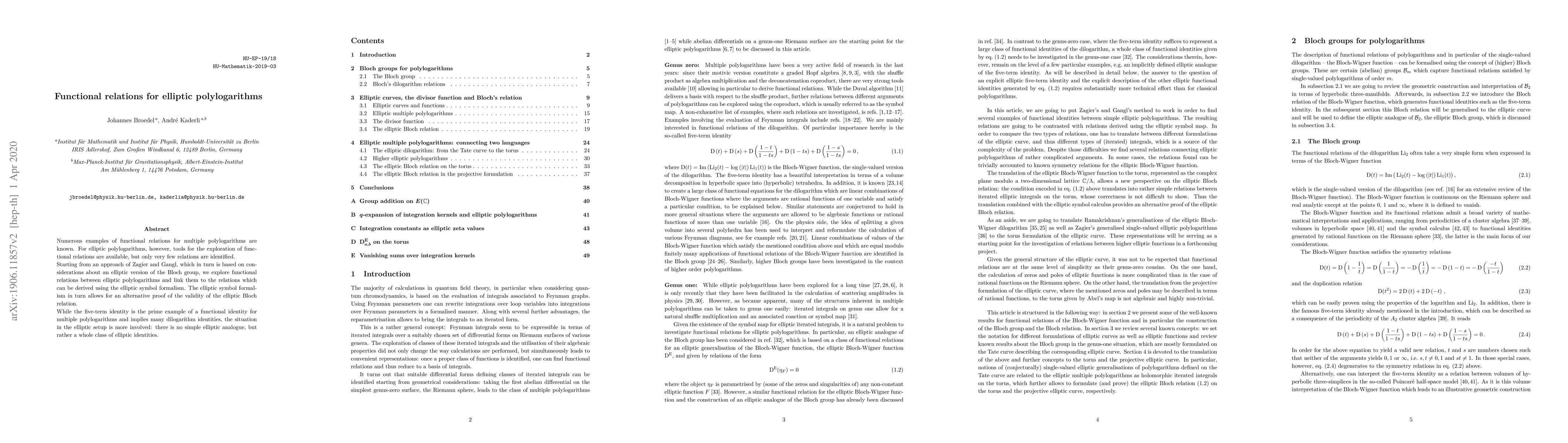 Researchers explore functional relations for elliptic polylogarithms, discovering a class of identities and linking them to the elliptic symbol formalism, providing an alternative proof of the elliptic Bloch relation.