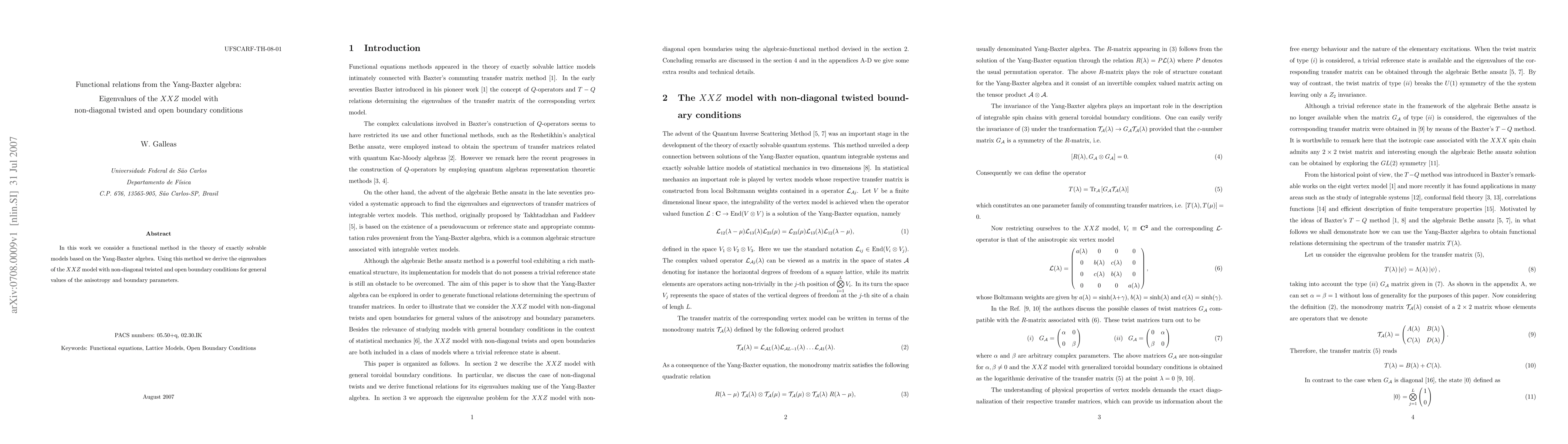 In this work we consider a functional method in the theory of exactly solvable models based on the Yang-Baxter algebra. Using this method we derive the eigenvalues of the XXZ model with non-diagonal twisted and open boundary conditions for general values of the anisotropy and boundary parameters.