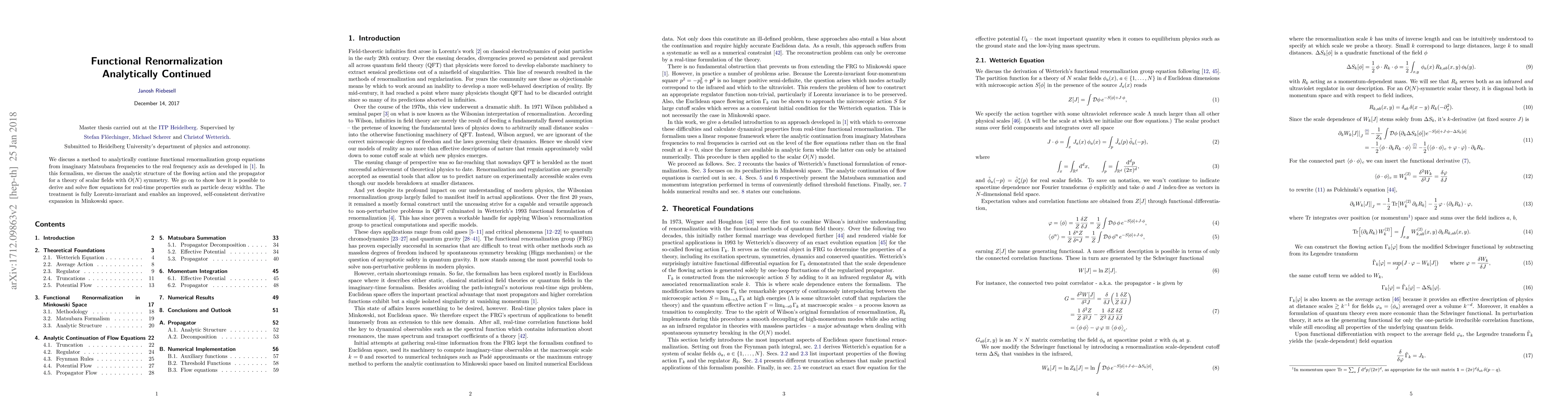 The paper proposes a method to analytically continue functional renormalization group equations from imaginary to real frequencies, enabling the study of real-time properties like particle decay widths in a Lorentz-invariant framework. This approach allows for a self-consistent derivative expansion in Minkowski space.