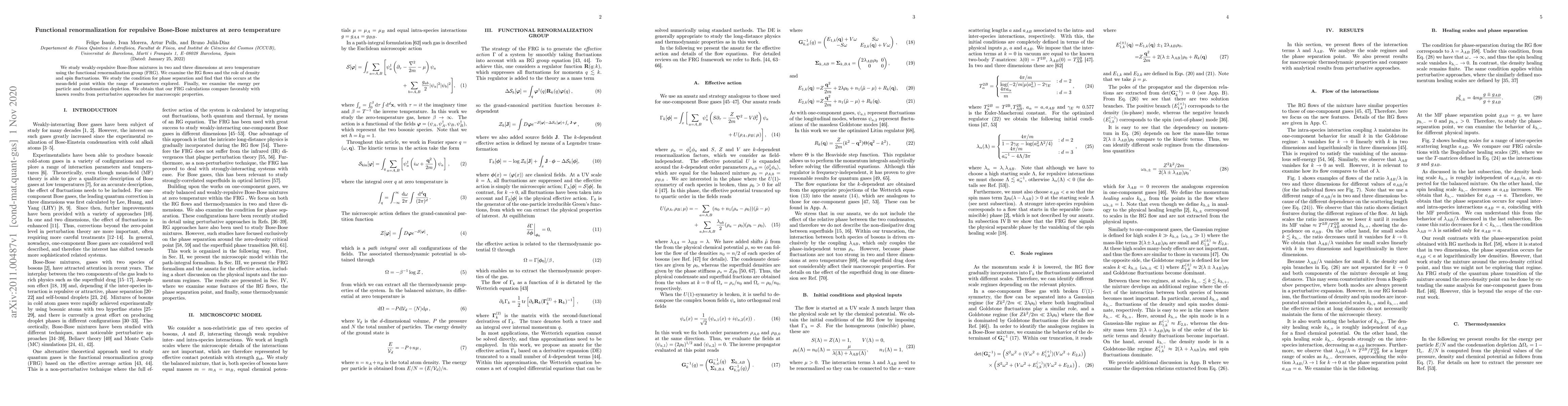 This research employs functional renormalization group (FRG) to analyze weakly-repulsive Bose-Bose mixtures at zero temperature, revealing that phase separation occurs at the mean-field point. The study finds favorable comparisons between FRG calculations and known perturbative results for macroscopic properties.