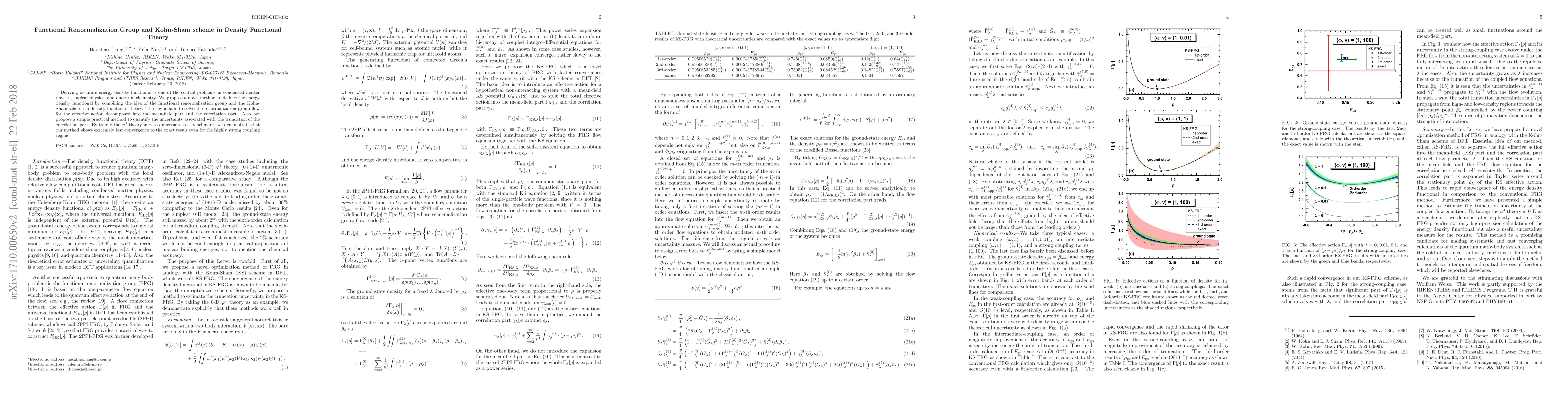 This paper proposes a novel method combining functional renormalization group and Kohn-Sham schemes to derive accurate energy density functionals, demonstrating fast convergence to exact results in a benchmark model, and introduces a practical approach to quantify uncertainties from correlation truncation.