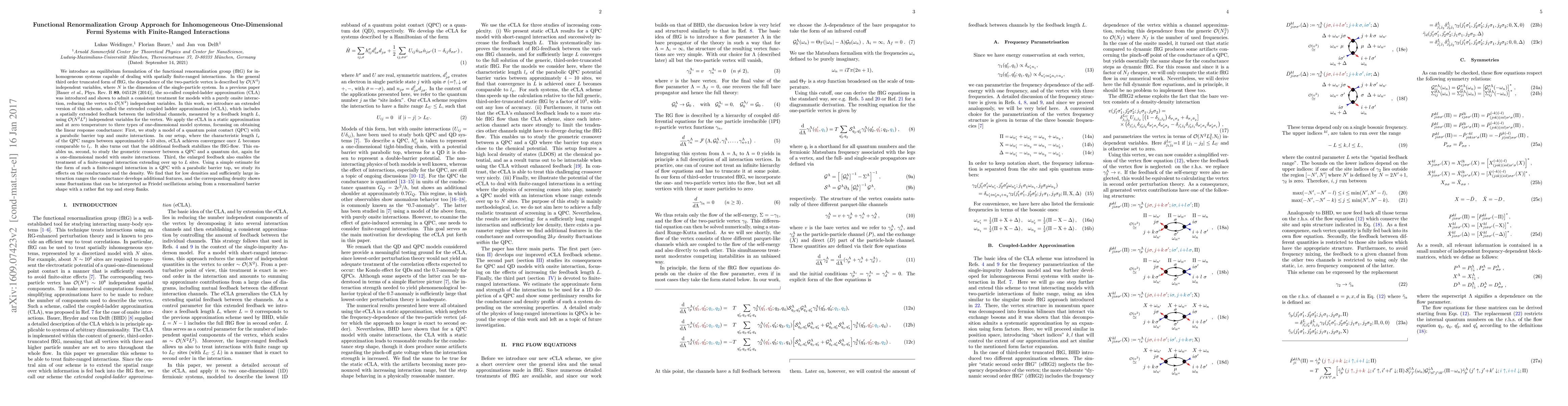 This paper extends the functional renormalization group (fRG) approach to inhomogeneous one-dimensional Fermi systems with finite-ranged interactions, introducing the extended coupled ladder approximation (eCLA) to manage spatially extended feedback. The eCLA is applied to quantum point contacts, quantum dots, and models with finite-range interactions, revealing oscillatory conductance features and Friedel oscillations at low densities.