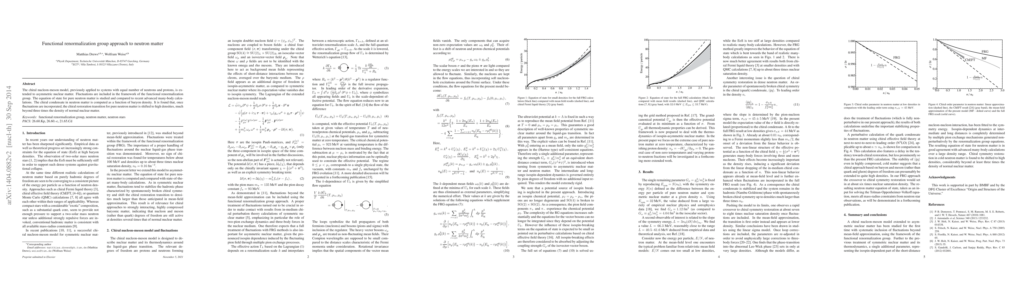 This paper extends the chiral nucleon-meson model to asymmetric neutron matter using the functional renormalization group to include fluctuations. The study finds that incorporating fluctuations shifts the chiral restoration transition to densities significantly higher than three times the normal nuclear matter density.