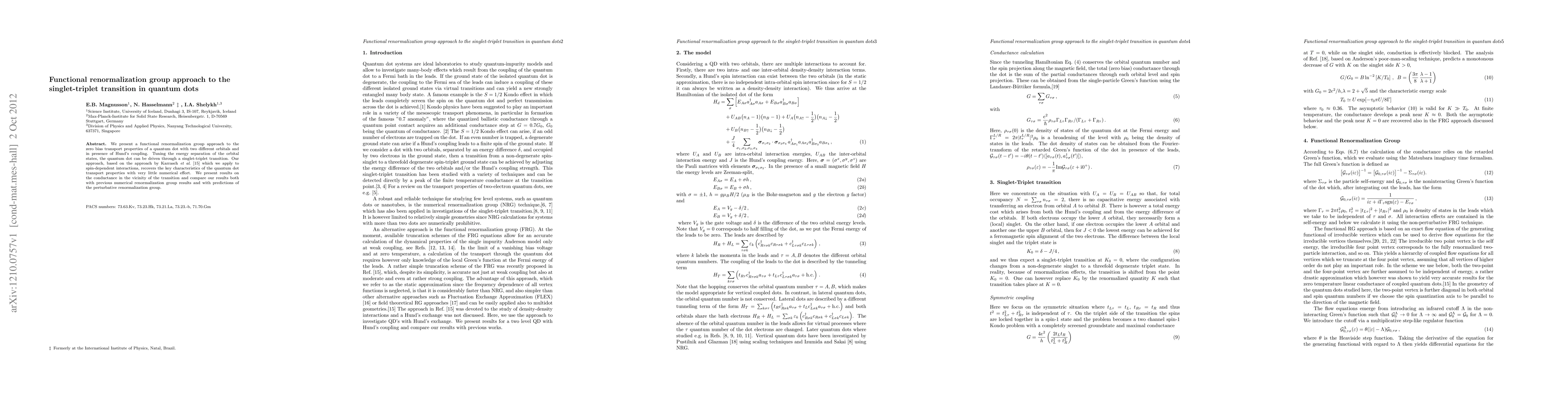This paper employs a functional renormalization group approach to study the zero bias transport properties of a quantum dot with two orbitals and Hund's coupling, focusing on the singlet-triplet transition. The method effectively captures the key characteristics of the quantum dot's conductance near the transition, comparing favorably with previous numerical and perturbative renormalization group results.