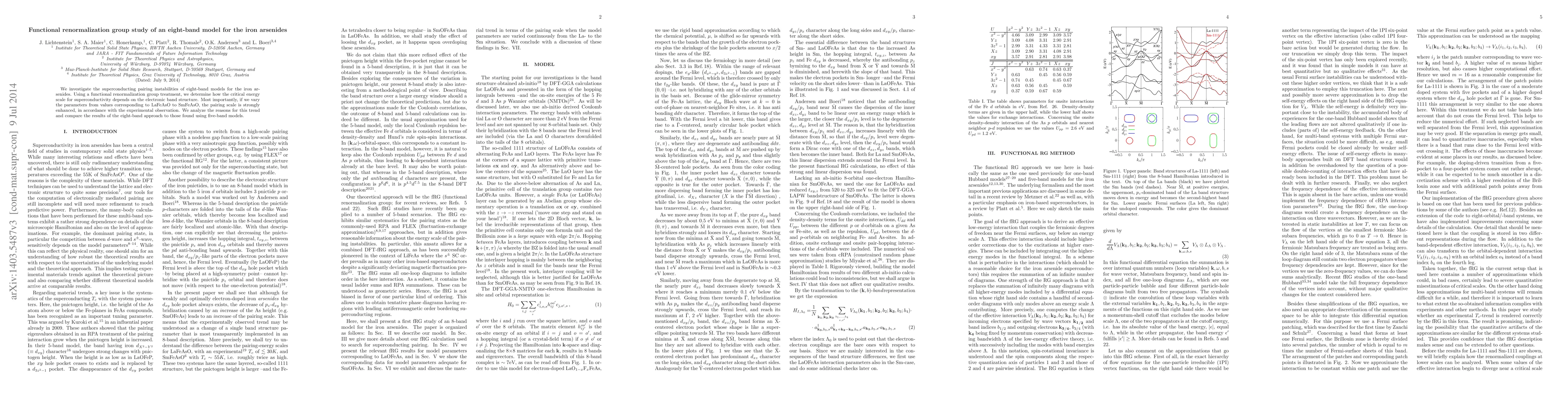 We investigate the superconducting pairing instabilities of eight-band models for the iron arsenides. Using a functional renormalization group treatment, we determine how the critical energy scale for superconductivity depends on the electronic band structure. Most importantly, if we vary the parameters from values corresponding to LaFeAsO to SmFeAsO, the pairing scale is strongly enhanced, in accordance with the experimental observation. We analyze the reasons for this trend and compare the results of the eight-band approach to those found using five-band models.