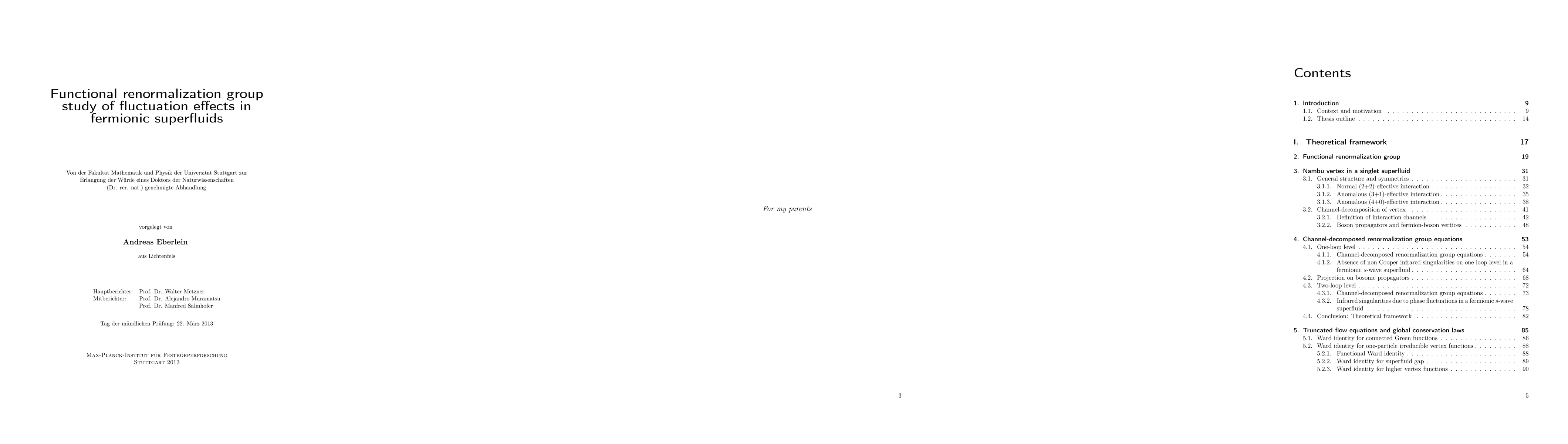 This thesis is concerned with ground state properties of two-dimensional fermionic superfluids, in which fluctuation effects like the renormalization of the order parameter or infrared singularities are important. In the superfluid state, the fermionic two-particle vertex develops rich and singular dependences on momentum and frequency, for which an efficient parametrization in terms of boson-exchange interactions in the particle-hole and particle-particle channels is formulated. Based on this decomposition of the vertex, flow equations for the effective interactions are derived, extending existing channel-decomposition schemes to i) the description of symmetry breaking in the Cooper channel and ii) the inclusion of those two-loop renormalization contributions to the vertex that are neglected in the Katanin scheme. In the second part of this thesis, the superfluid ground state of various model systems is studied. For the attractive Hubbard model at weak coupling, the momentum and frequency dependence of the two-particle vertex and the frequency dependence of the self-energy are determined on one- and two-loop level. Results for the suppression of the superfluid gap by fluctuations are in good agreement with the literature. The two-loop approximation captures the singular infrared behaviour that is expected in a fermionic superfluid at zero temperature. For the repulsive Hubbard model at weak coupling, the momentum dependence of the two-particle vertex and the d-wave superfluid gap are determined on one-loop level as a function of the interaction, the next-nearest neighbour hopping and the fermionic density. The results for the critical scales and superfluid gaps are in qualitative agreement with the literature and suggest the existence of an optimal value of the next-nearest neighbour hopping for pairing.
