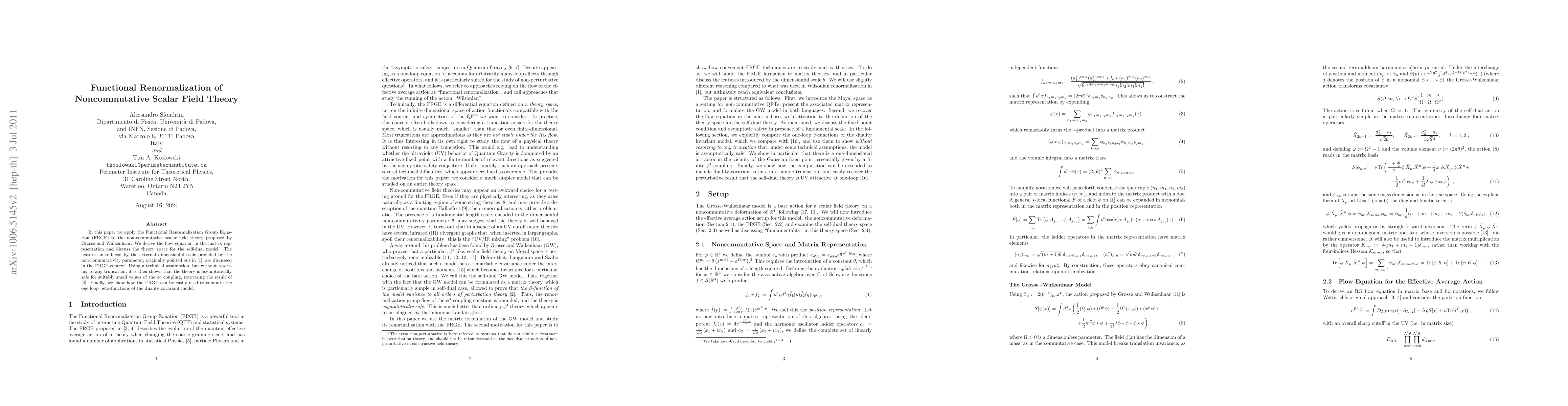 In this paper we apply the Functional Renormalization Group Equation (FRGE) to the non-commutative scalar field theory proposed by Grosse and Wulkenhaar. We derive the flow equation in the matrix representation and discuss the theory space for the self-dual model. The features introduced by the external dimensionful scale provided by the non-commutativity parameter, originally pointed out in \cite{Gurau:2009ni}, are discussed in the FRGE context. Using a technical assumption, but without resorting to any truncation, it is then shown that the theory is asymptotically safe for suitably small values of the $\phi^4$ coupling, recovering the result of \cite{disertori:2007}. Finally, we show how the FRGE can be easily used to compute the one loop beta-functions of the duality covariant model.