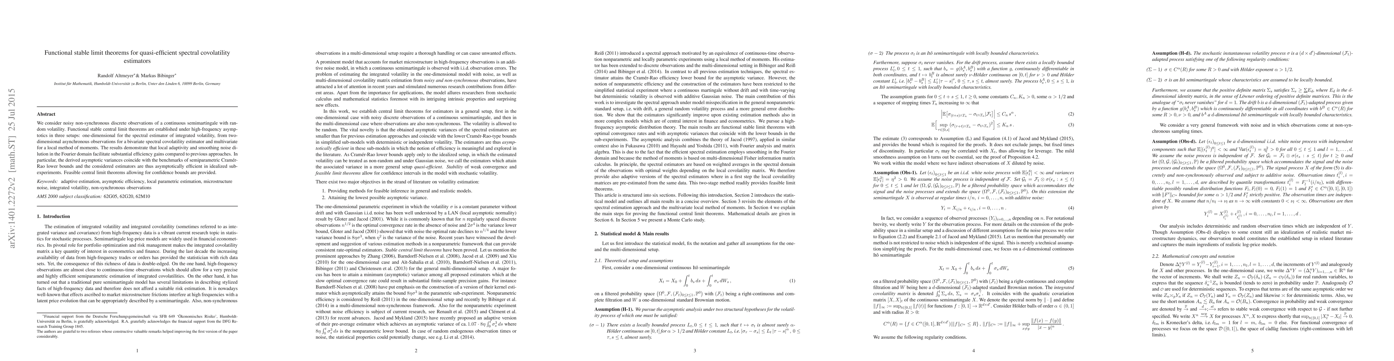 This paper establishes functional stable limit theorems for quasi-efficient spectral covolatility estimators under high-frequency asymptotics. It demonstrates substantial efficiency gains through local adaptivity and smoothing, achieving asymptotic variances that match semiparametric Cramér-Rao lower bounds.