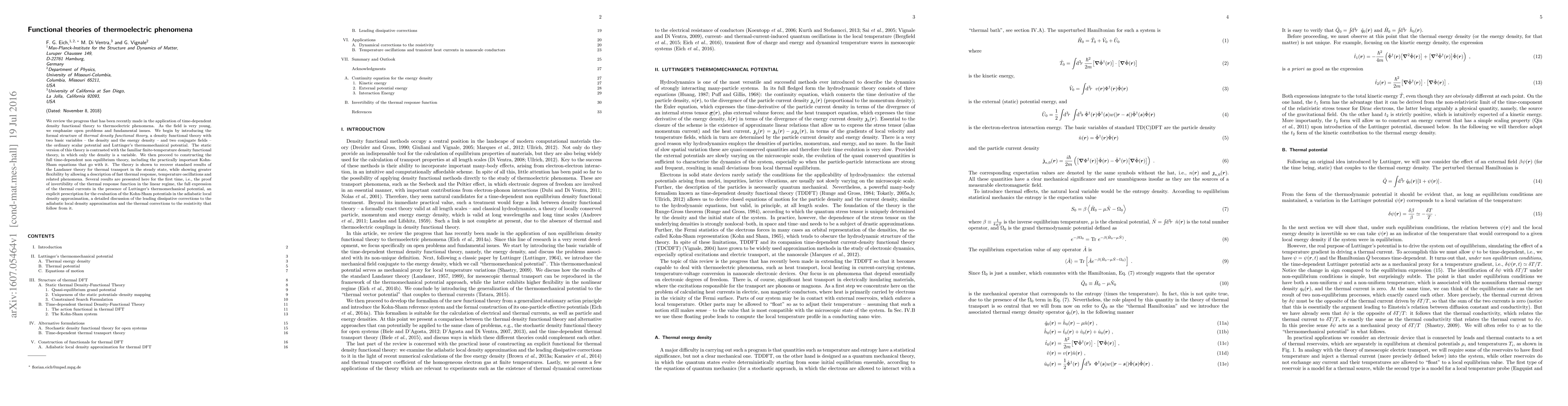 This paper reviews recent advancements in applying time-dependent density functional theory to thermoelectric phenomena, highlighting the formal structure of thermal density functional theory and its time-dependent non-equilibrium version. It presents new results, including the invertibility of the thermal response function and detailed expressions for thermal currents and resistivity corrections.