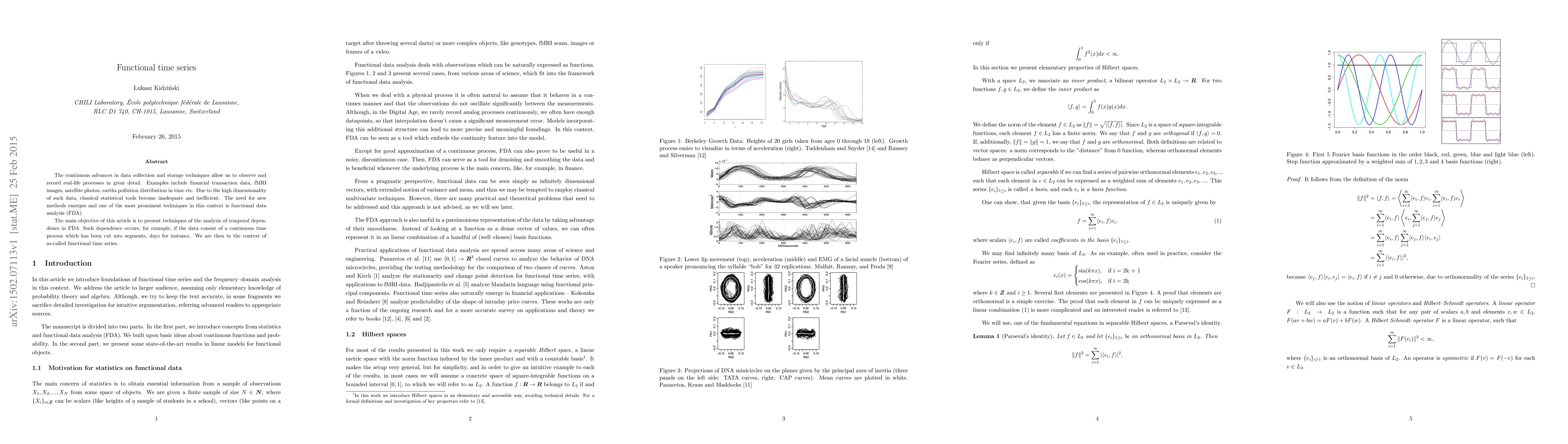The continuous advances in data collection and storage techniques allow us to observe and record real-life processes in great detail. Examples include financial transaction data, fMRI images, satellite photos, earths pollution distribution in time etc. Due to the high dimensionality of such data, classical statistical tools become inadequate and inefficient. The need for new methods emerges and one of the most prominent techniques in this context is functional data analysis (FDA). The main objective of this article is to present techniques of the analysis of temporal dependence in FDA. Such dependence occurs, for example, if the data consist of a continuous time process which has been cut into segments, days for instance. We are then in the context of so-called functional time series.