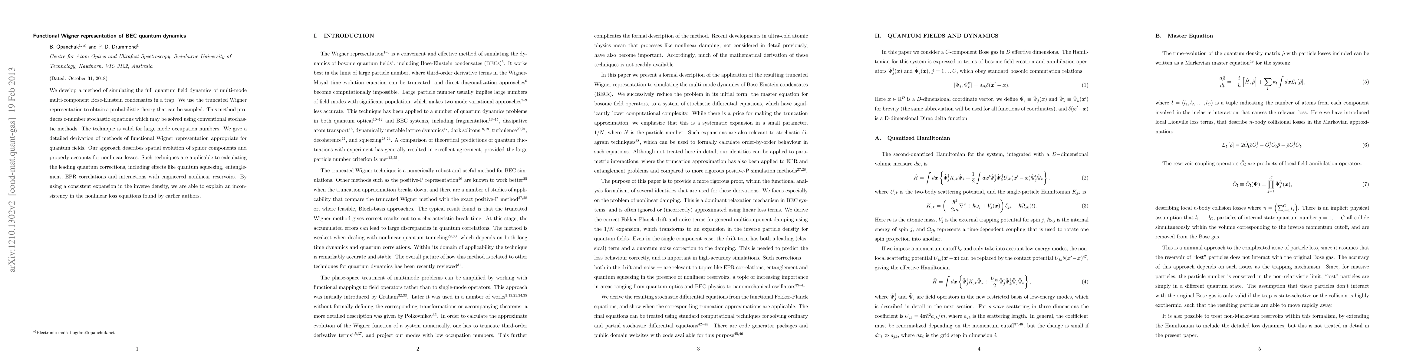 This paper introduces a method for simulating quantum dynamics in multi-mode Bose-Einstein condensates using the truncated Wigner representation, yielding stochastic equations for spatial evolution and accounting for nonlinear losses. The method resolves inconsistencies in previous nonlinear loss models and can calculate quantum corrections like squeezing and entanglement.